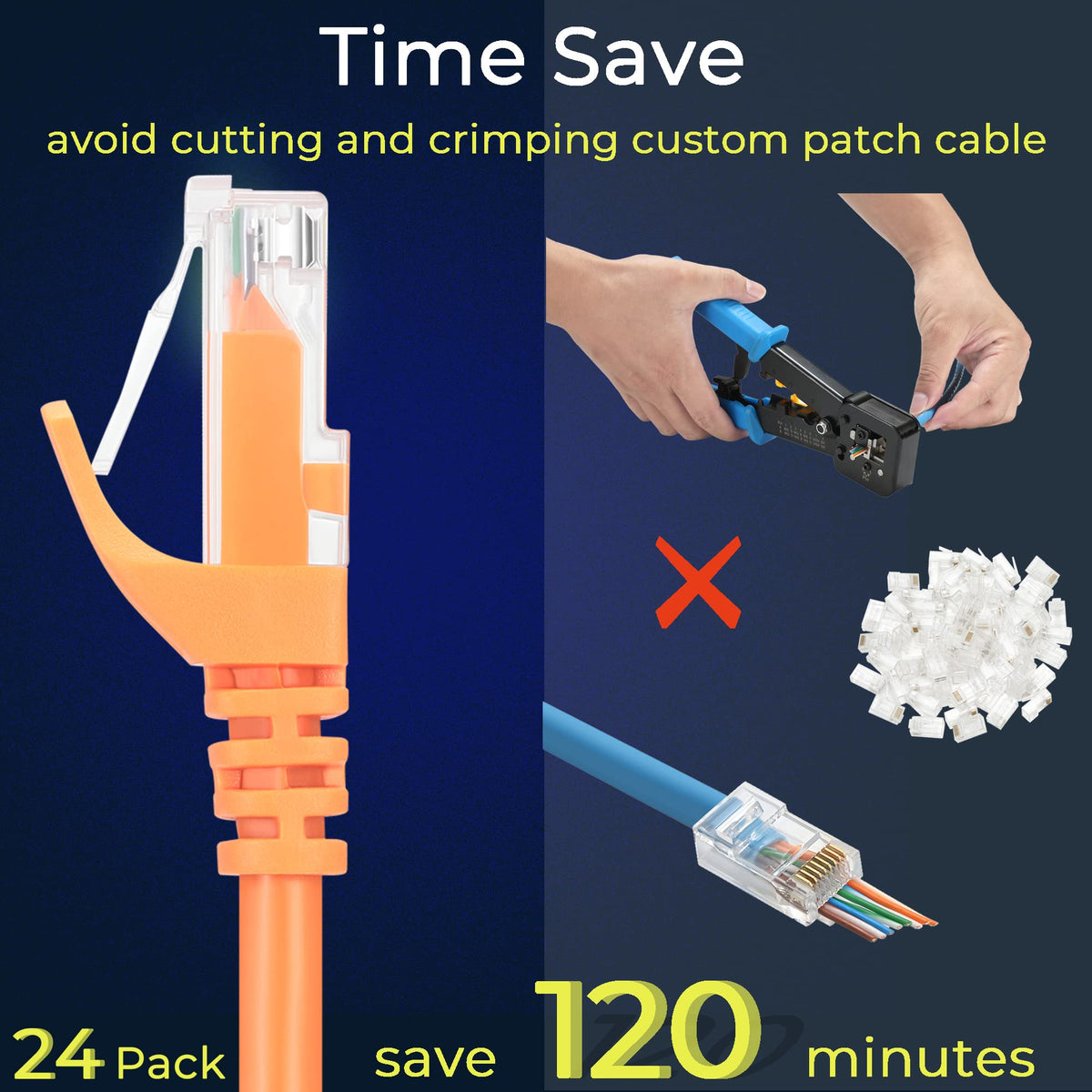 Rapink Patch Cables Cat6 3Ft (24 Pack), Ethernet Patch Cable 10G Support, Cat 6 Patch Cable For Patch Panel To Switch, Flexiable Cat 6 Ethernet Cable With Gold Plated Orange