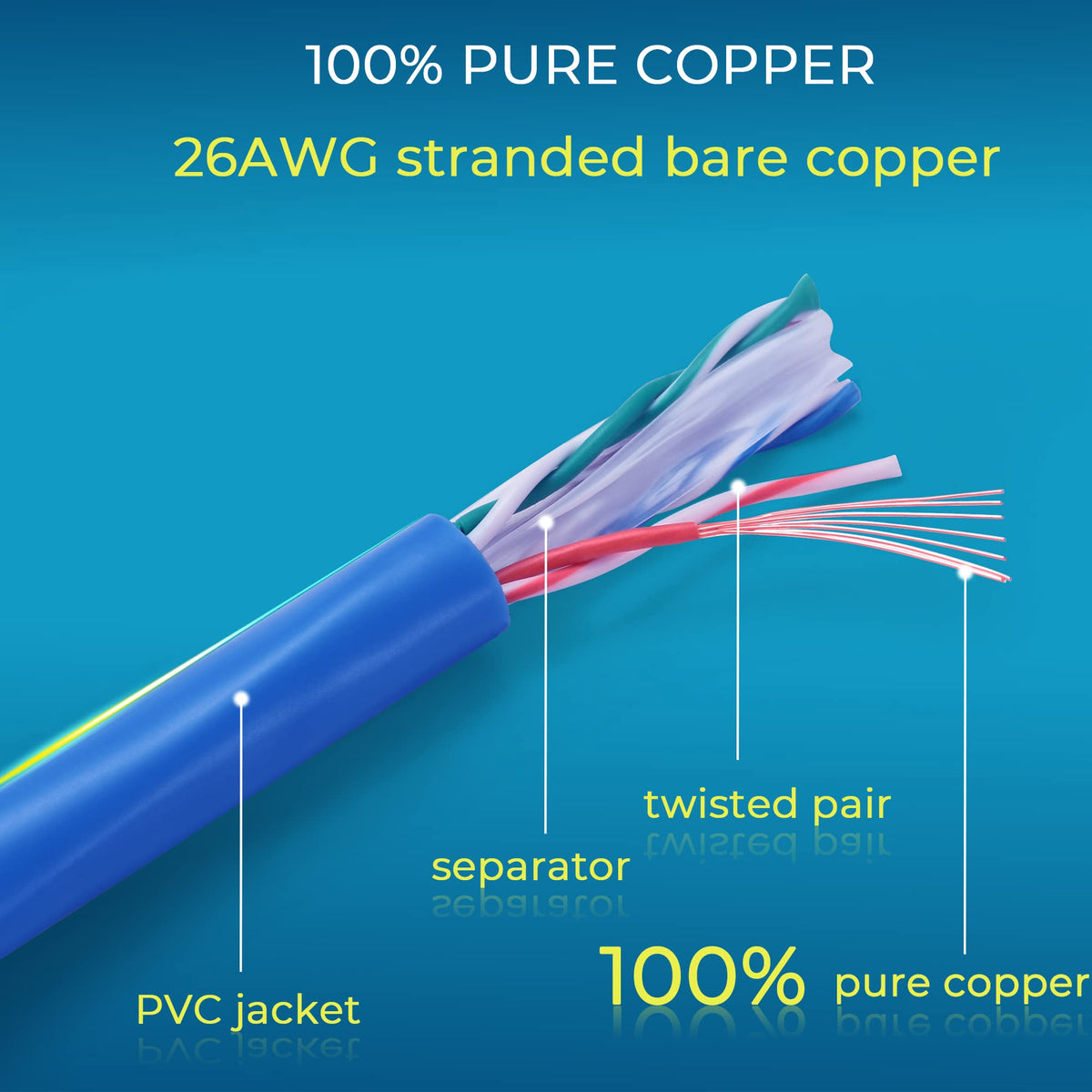 Q: What materials are used in the construction of these Ethernet cables?A: The Rapink Cat6 patch cables are made with 26AWG stranded pure copper and feature gold-plated connectors, ensuring durability and superior connectivity.