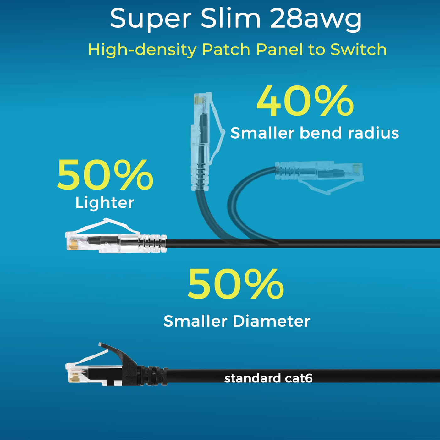 Q: What advantages do Cat6a patch cables have over Cat6 cables?A: Cat6a patch cables support higher frequencies of up to 550MHz and can deliver speeds up to 10G, making them ideal for high-performance networking environments. Additionally, their super slim design reduces congestion and improves airflow in data centers.