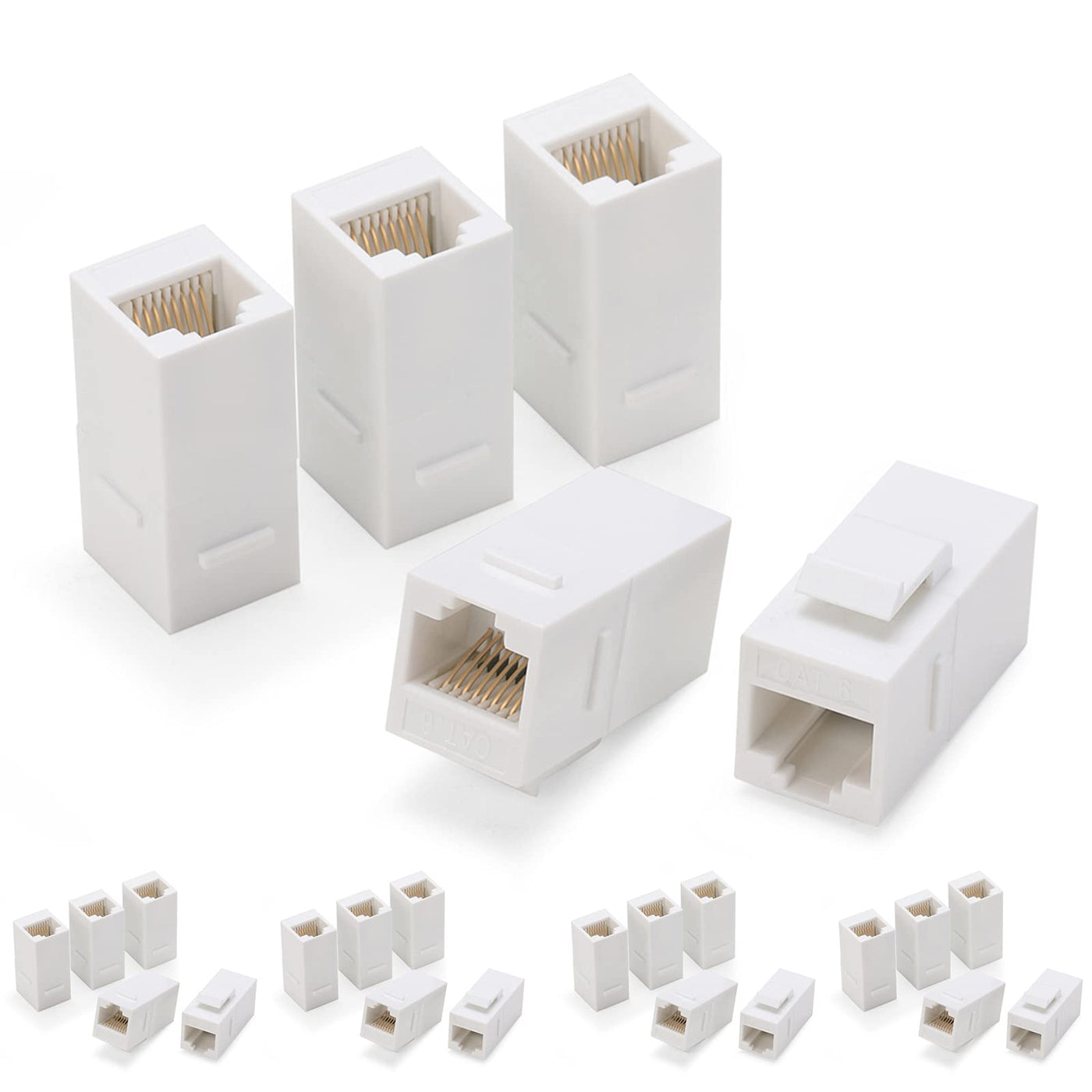Rapink Rj45 Coupler Inline Keystone Jack, Female To Female Rj45 Keystone Coupler 25 Pack For Ethernet Cat6/Cat5E/Cat5 Cable Extender With Gold Plated White