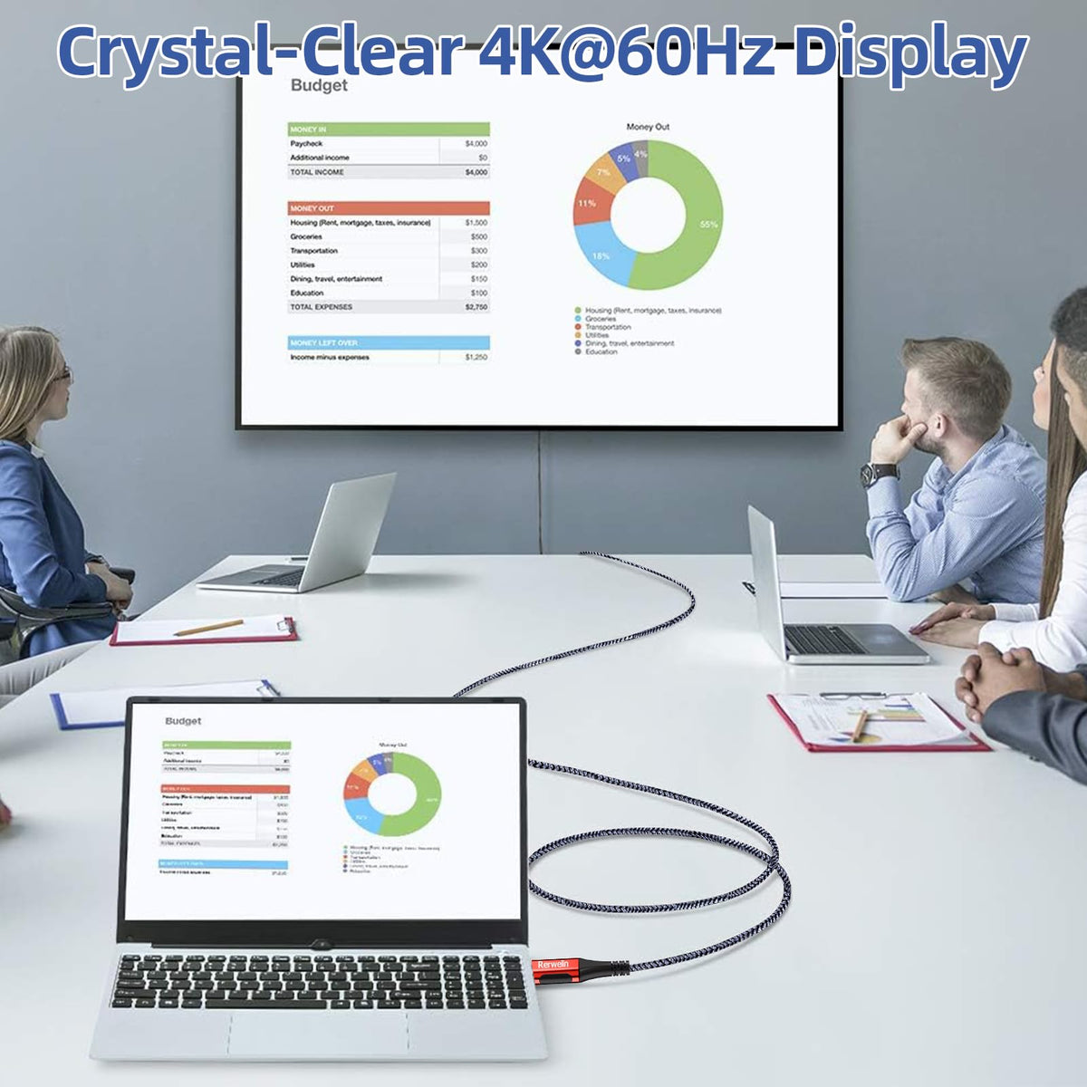Rerwelin 15 Ft For Long Thunderbolt 4 Cable 100W, 20Gbps