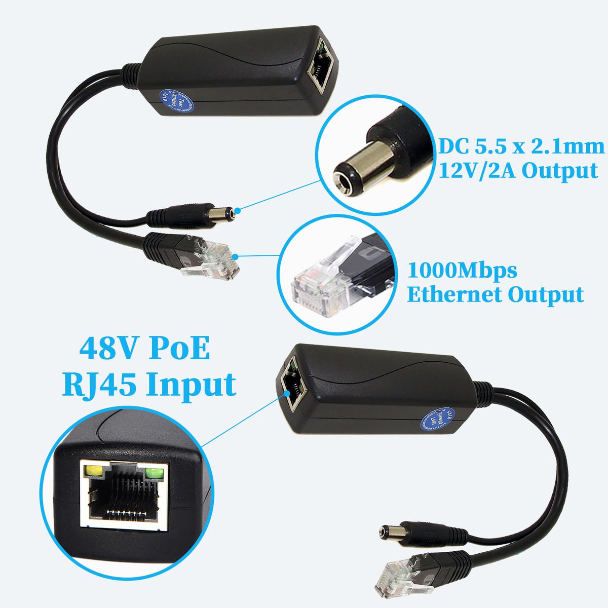 Revodata Poe Splitter Gigabit 12V/2A, Dc 5.5*2.1Mm Plug Poe To Dc 12V/2A Output, Gigabit Ethernet Comply Ieee802.3Af/At, Plug An