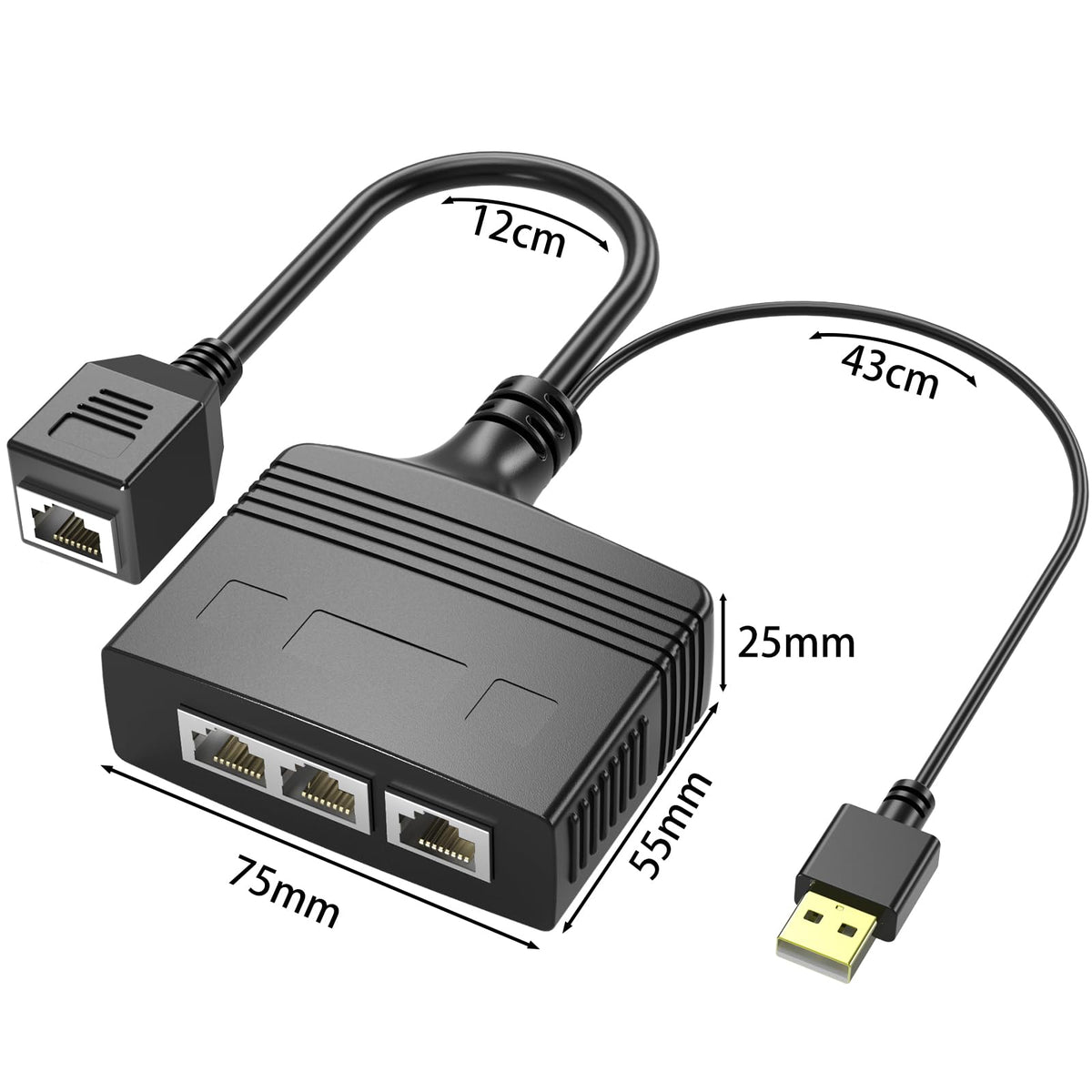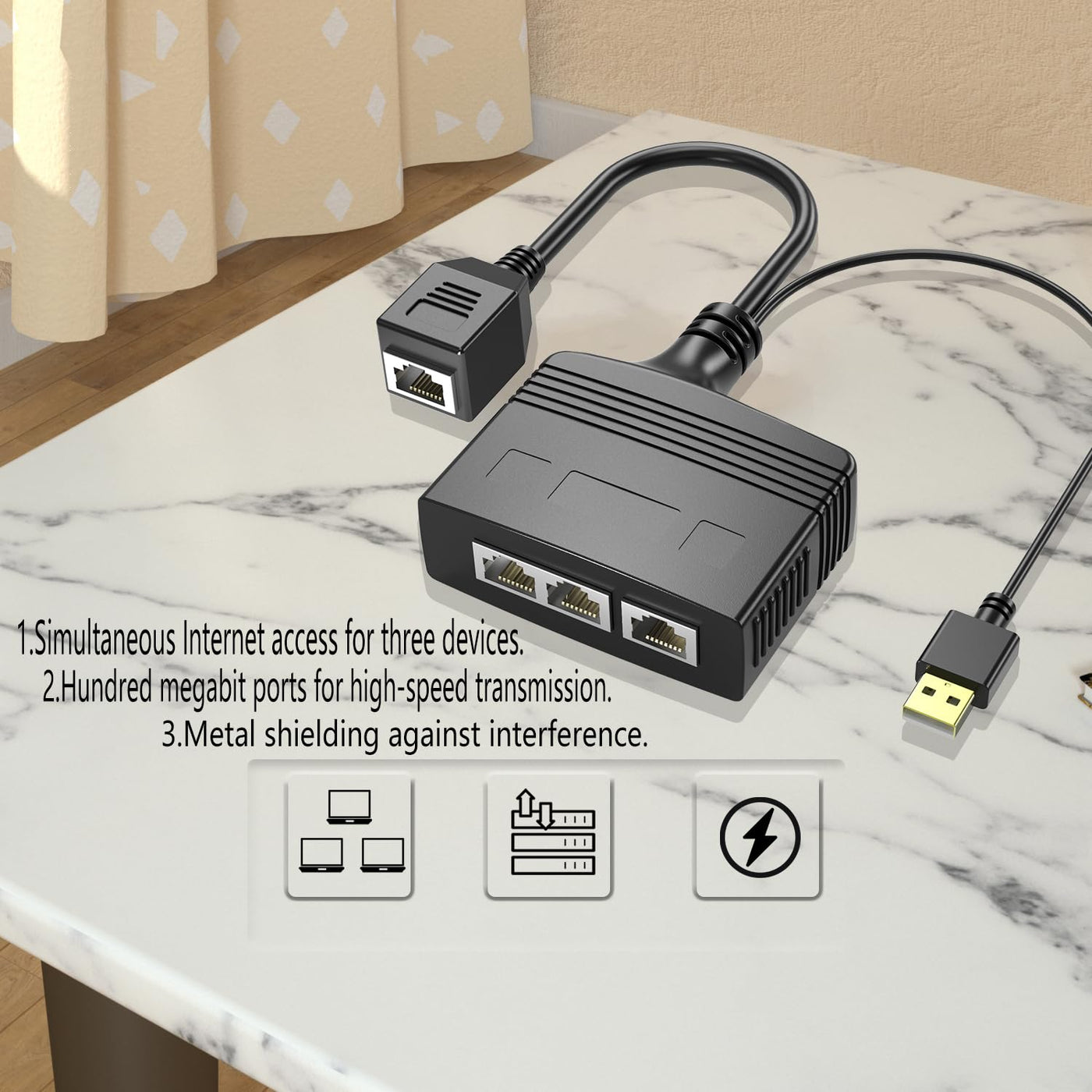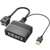 Product Description: Riieyoca Rj45 Ethernet Splitter Adapter, 1 To 3 Port Internet Splitter Adapter ,8 Core 100Mbps High Speed Lan Network Splitter Adapter For Cat5, Cat5E, Cat6, Cat7,Cat8 Rj45 Splitter Adapter Easy To Connect, 3 Devices Networked At The Same Time, Simple And Fast Features: 1 To 3 Port Internet Splitter Adapter Rj45 Splitter Adapter Easy To Connect, 3 Devices Networked At The Same Time, Simple And Fast 8 Core 100Mbps High Speed Lan Network Splitter Adapter It Allows 3 Devices To Easily Access The Internet At The Same Time It Allows You To Enjoy Hdtv And Wireless Wifi Network At The Same Time Without Interfering With Each Other It Is Compatible With Routers, Laptops, Computers, Switches, Tvs, Set-Top Boxes And Etc. Suitable For Cat5, Cat5E, Cat6, Cat7 And Cat8 Network Ethernet Cable Note: The Product Needs To Be Connected To A Power Source For Use. Size: 7.5Cm X 5.2Cm X 2.5Cm Color:Black Package Included: 1 X 3 Port Network Switch