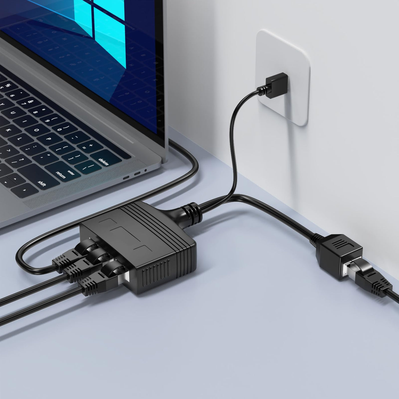 Q: Can I use this Ethernet splitter with different categories of Ethernet cables?A: Yes, the RIIEYOCA Ethernet Splitter Adapter is compatible with Cat5, Cat5e, Cat6, Cat7, and Cat8 Ethernet cables, making it versatile for various network setups.