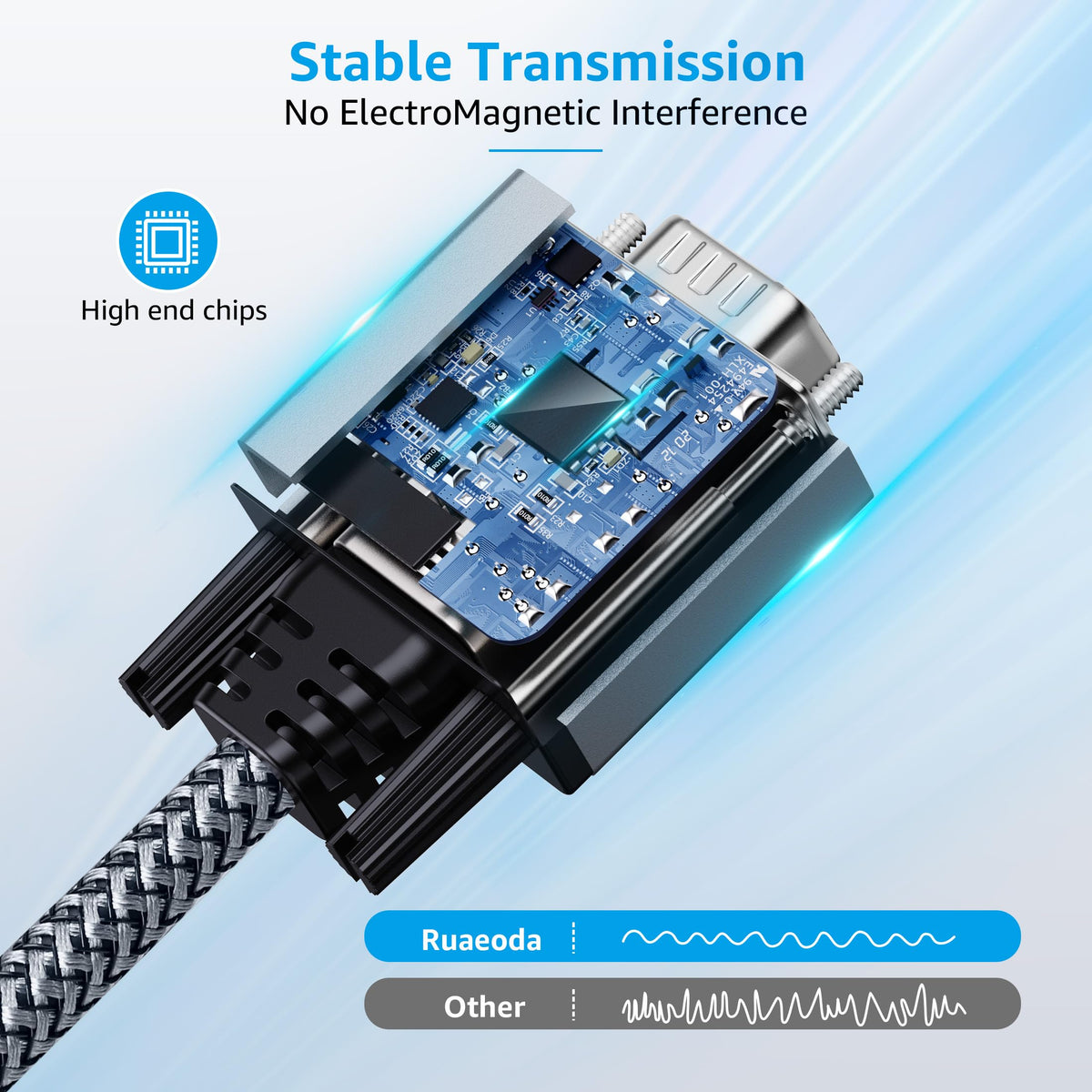 Q: Is the Ruaeoda VGA Cable durable and long-lasting?A: Yes, the Ruaeoda VGA Cable features a high-performance design with a braided nylon exterior and premium metal casing, ensuring durability and resistance to wear and tear.