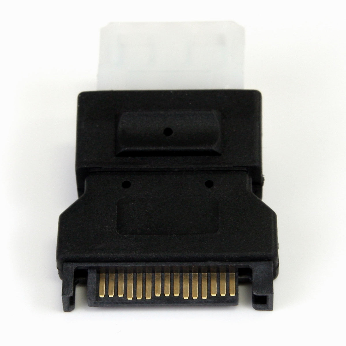 Q: What is the purpose of the Sata to LP4 15 Pin Power Adapter?A: The Sata to LP4 15 Pin Power Adapter allows you to connect an IDE hard drive to a Serial ATA power connector provided by your computer's power supply. It features one male SATA power connector and one LP4 female power connector.