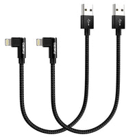 Short Iphone Charger 1Ft 2Pack [ Mfi Certified] 12 Inch 90 Degree Lightning Cable Fast Nylon Braided Right Angle Iphone Charging