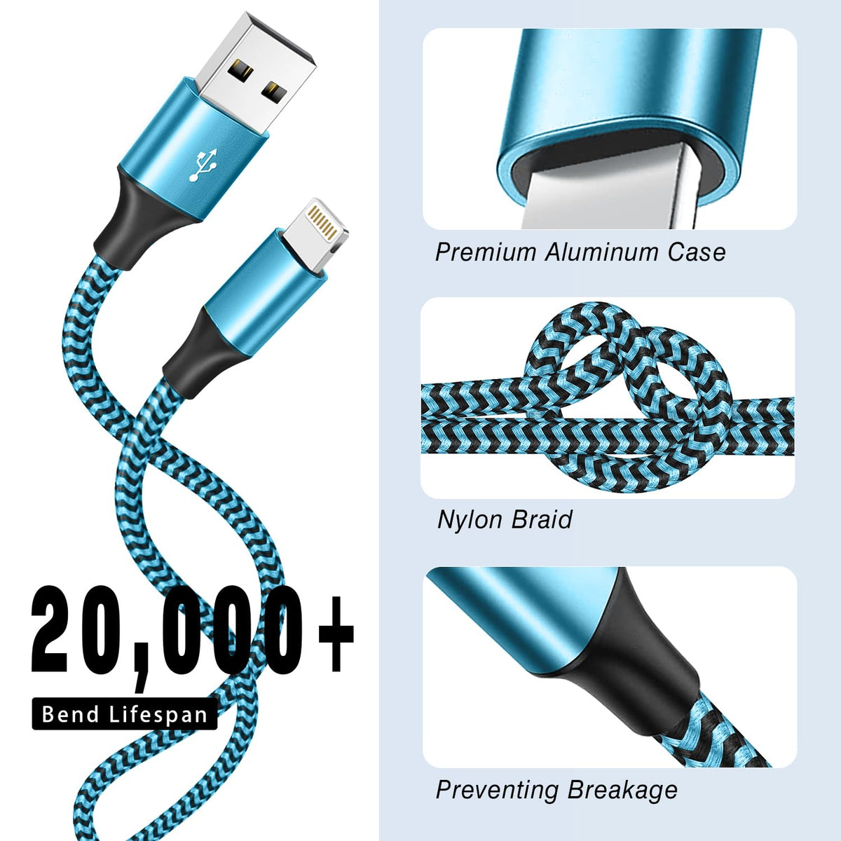 Shusel For Iphone Charger 3 Pack 6Ft Usb Lightning Cable Mfi Certified Fast Charging Nylon Braided For Iphone Charger Cord Compa