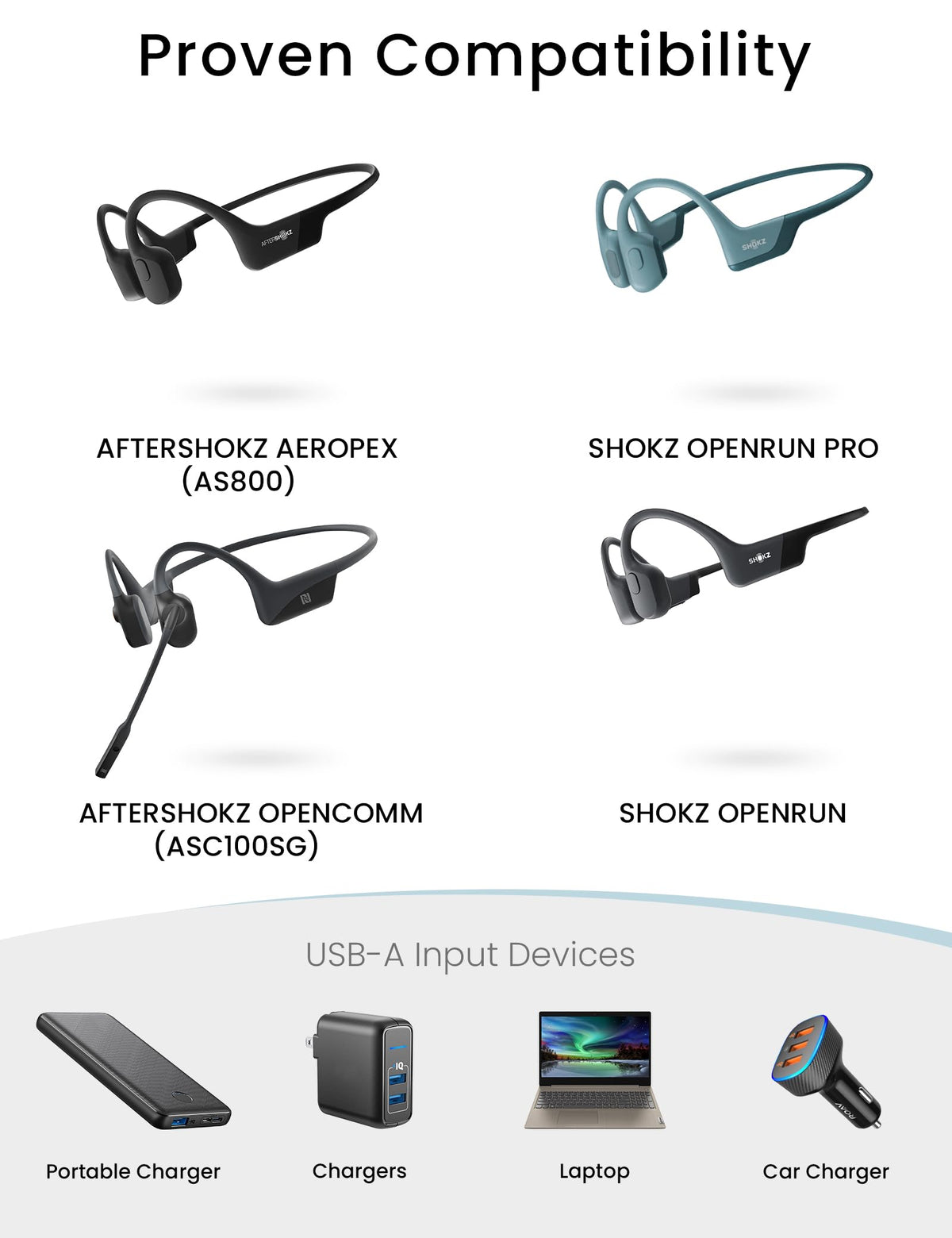 Sinoacc Charging Cable For Aftershokz Aeropex As800 & Opencomm Asc100Sg, Shokz Openrun & Openrun Pro S810 Magnetic Replacement 3.3Ft Usb Charger Cable Cord For Aftershokz Bone Conduction Headphones