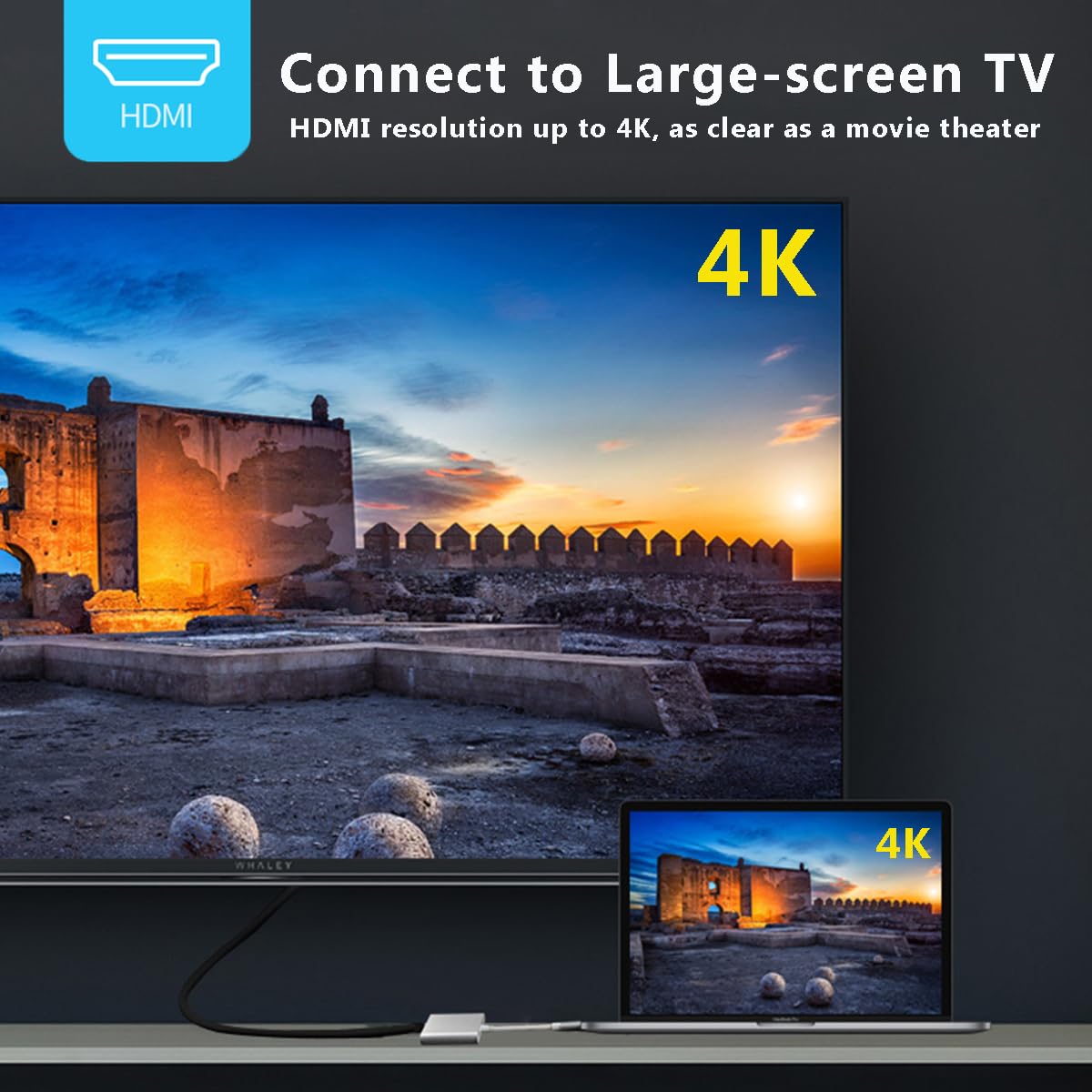 Q: What video resolution does the adapter support?A: The adapter supports 4K video output at 30Hz, allowing you to enjoy high-definition visuals on compatible displays such as TVs, projectors, and monitors.
