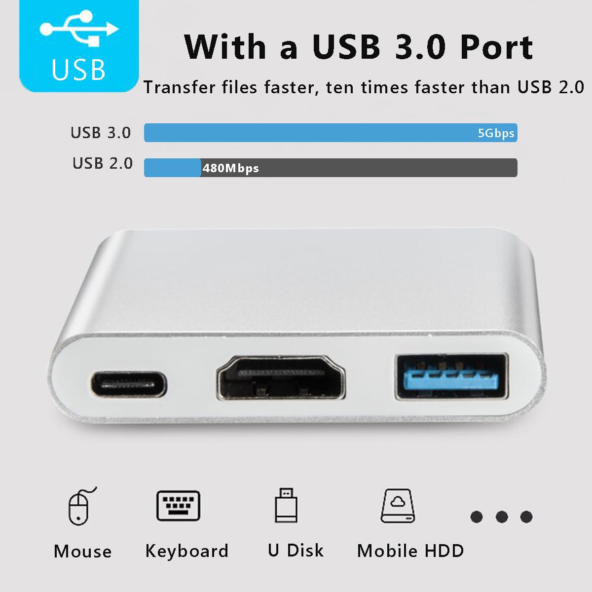 Usb C To Hdmi Adapter, Usb C To Hdmi Multiport Adapter With Charging Port, Hdmi To Usb C Hub Adapter For Monitor To Laptop, Usb C Hdmi Adapter 4K Converter For Ipad Pro/Air, Usb C To 4K Hdmi Adapter With 100W Pd & Usb 3.0 Port Multiport Digital Av Converter For Macbook Pro, Usb-C To Usb Adapter 5Gbps,Compatible With Iphone 15, Tablets, Switch And More Usb-C Devices