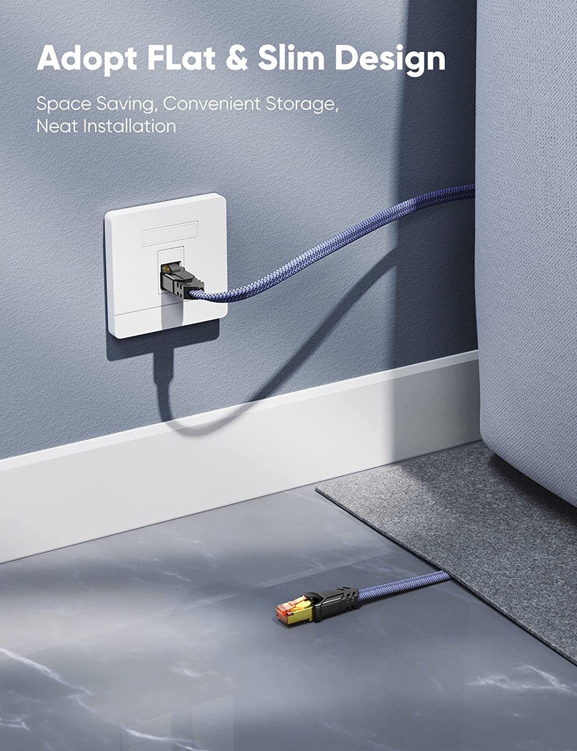 Snowkids Cat 8 Ethernet Cable 25 Ft, Strong Signal, High Speed 40Gbps 2000Mhz, Network Cord With Rj45 Internet Connector For Tv/