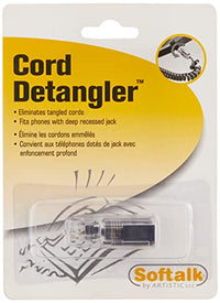 Q: What is the purpose of the Softalk 21002 Phone Cord Detangler?A: The Softalk 21002 Phone Cord Detangler is designed to eliminate tangled phone cords, making it easier to manage your phone lines in both home and office settings. It allows your coil phone cord to rotate freely, preventing knots and twists.
