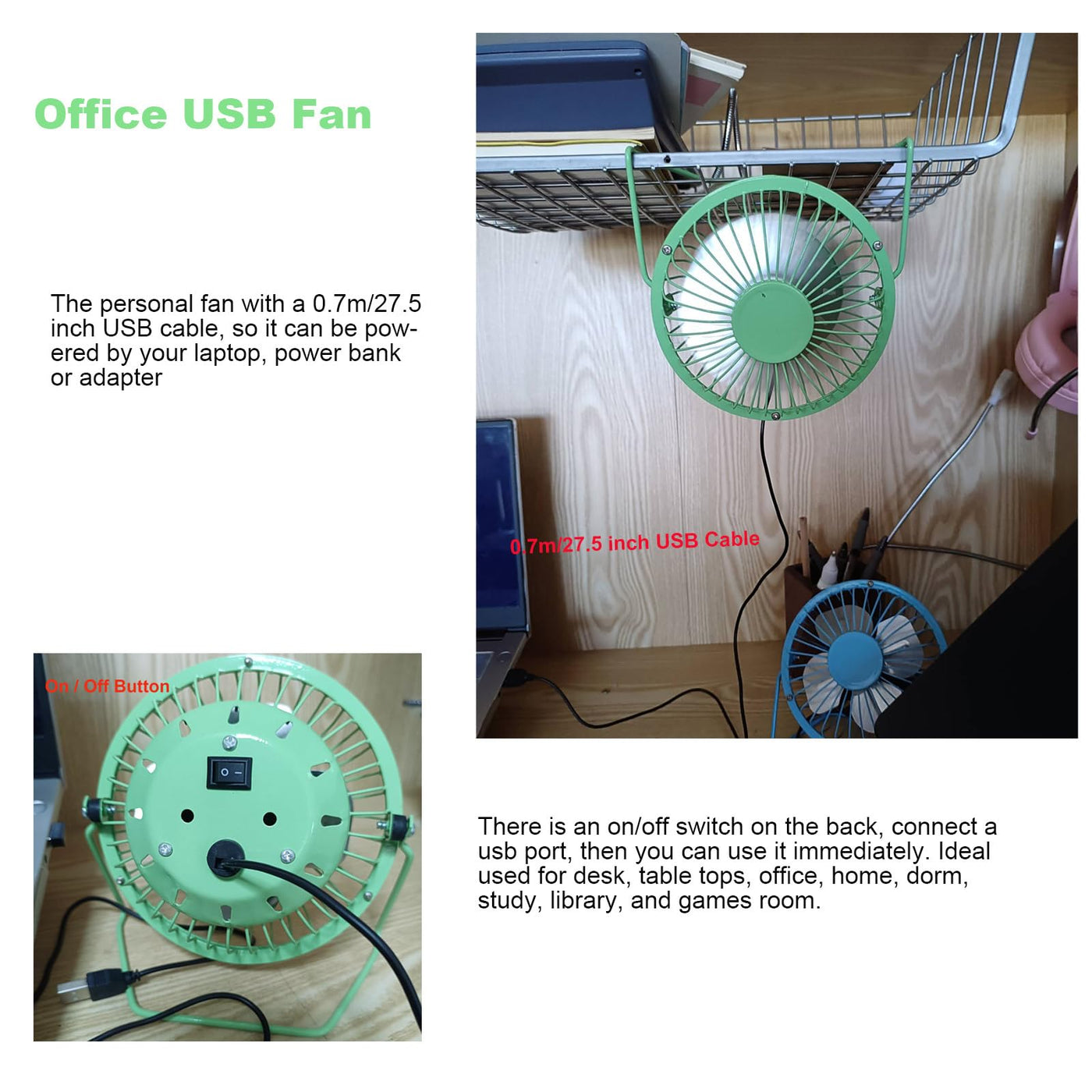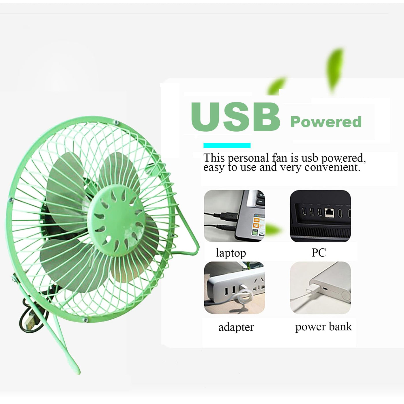 Sokelinn Six 4 Inch Small Usb Desk Fan, Metal Mini Quiet Personal Cooling Fan For Home Office Car Travel (Green)