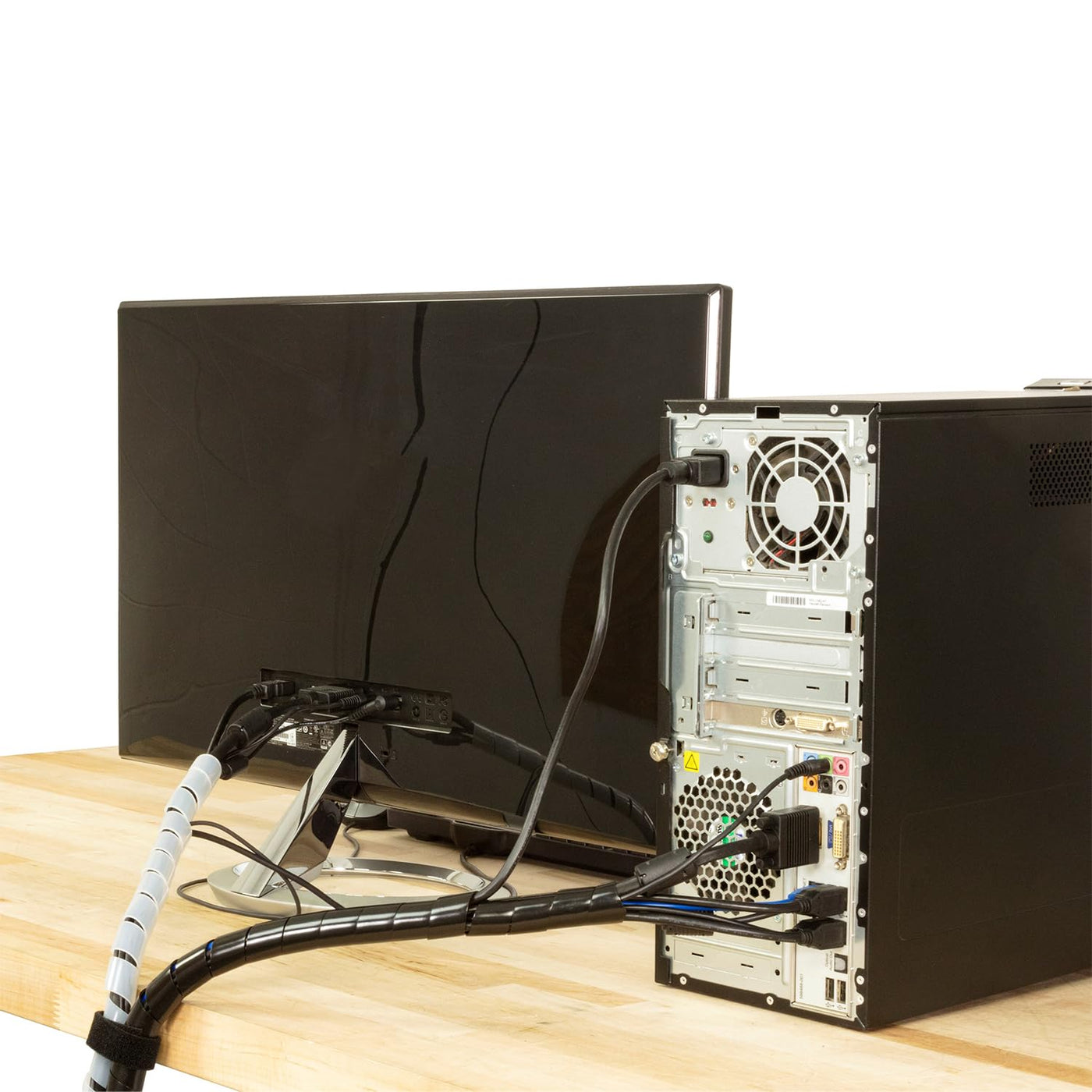 Q: What types of cables can I organize with this wrap?A: The Spiral Cable Wrap is versatile and can be used for organizing various types of cables, including USB, HDMI, PC, TV wires, and power cords, making it ideal for home or office use.