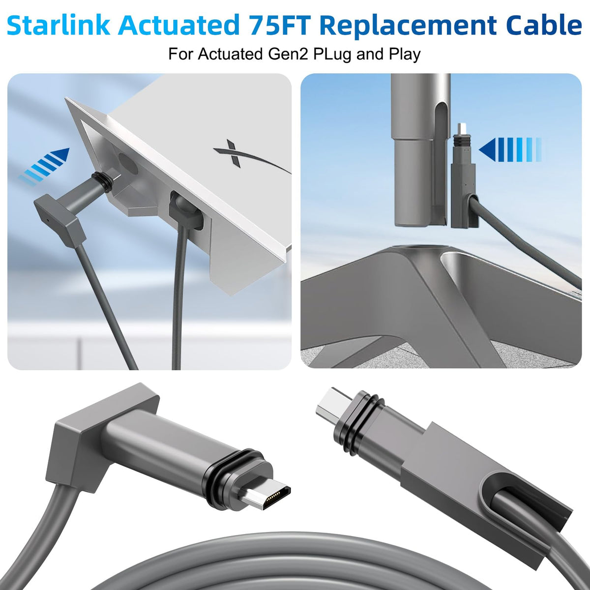 Standard Actuated Starlink Cable 75Ft/23M For Starlink Rectangular Satellite V2 Replacement Cable Starlink Internet Kit For Sate
