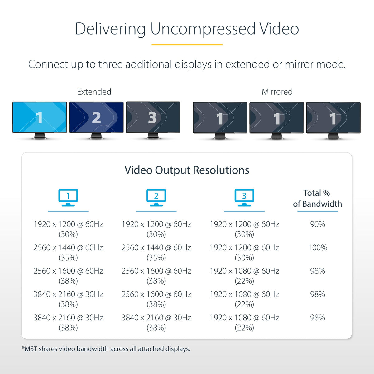 Multi Tasking Made Easy This 3 Port Displayport Mst Hub Lets You Daisy Chain Triple Dp Monitors To Your Displayport Windows Device, Conveniently Helping You To Increase And Maximize Your Productivity. With Devices Becoming More Portable Than Ever, You Are Limited To Fewer Video Outputs And Confined To Your Small Integrated Screen. This Multi Monitor Mst Hub Solves That Problem By Enabling You To Connect Three Separate Displays To Your Displayport Equipped Computer, Making Multi-Tasking Much Easier. Using This Displayport To Displayport Mst Splitter, You Can Mirror Your Display Onto Additional Monitors Or Stream Independent Content To Each Display, Which Makes It The Ideal Accessory For Travel Or Hot-Desking Environments. Astonishing Picture Quality Mst Technology Uses Your Existing Video Card To Minimize The Use Of System Resources While Delivering Uhd 4K Resolutions For Two Monitors Or Displays Simultaneously. Plus, Because The Dp Hub Can Output High-Definition 1080P, It S Perfect For All High-Resolution Applications Such As Graphic Design And Cad Drawing. Connect To Any Display With This Displayport Multi Monitor Splitter, You Can Use Displayport Video Adapters And Cable Adapters That Enable You To Connect Hdmi, Vga Or Dvi Monitors. This Ensures Your Dp Mst Hub Will Be Compatible With Virtually Any Television, Monitor Or Projector. The Splitter Hub Is Vesa And Displayport Certified To Support Dp 1.2 Enabled Systems, For Seamless Integration With Your Existing Video Equipment. This Displayport To Displayport Mst Hub Is Backed By A 3-Year Warranty, And Free Lifetime Technical Support.