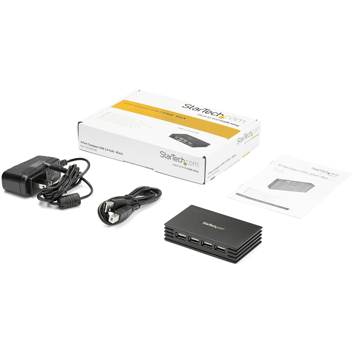 Startech.Com 4 Port Compact Black Usb 2.0 Hub Bus Powered Or With Included Power Adapter Portable Mac/Pc Laptop Hub (St4202U