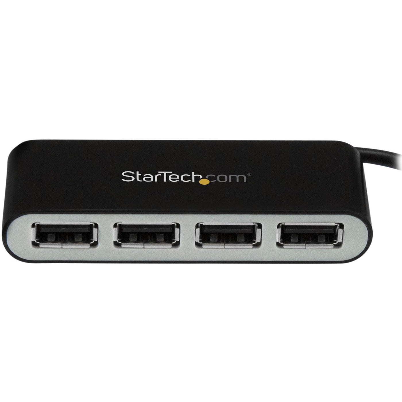 The Startechcom St4200Mini2 Usb 20 Hub Turns A Single Usb Connection Into Four Connections This Compact Hub Has Lightweight Housing With A Small Footprint Design For Travel Or Desktop Placement It Supports Up To 480 Mbps Throughput, With Extra Port Spacing For Larger Usb Connectors It Is Usb Bus Powered And Features A Built-In Cable, Which Allows You To Carry The Hub With You Anywhere This 4-Port Hub Has Convenient Port Layout On One Side For Easy Port Access When Connecting Or Disconnecting Devices Usb Hub Is Perfect For Travel Or Desktop Placement Dimensions: 06H X 11W X 32D, Cable Length: 61 Comes In Blacksilver Color With Plastic Enclosure Construction Connectors: 4 X 4-Pin Usb 20 Type-A Female On First End, 1 X 4-Pin Usb 20 Type-A Male On Second End Operating Systems: Windows, Mac, Chrome Os, Linux Data Transfer Rate: 480 Mbps Form Factor: External Power Source: Usb Bus Powered And Features A Built-In Cable, So You Can Carry The Hub With You Anywhere Compact, Lightweight Housing With A Small-Footprint Design For Travel Or Desktop Placement Convenient Port Layout On One Side For Easy Port Access When Connecting Or Disconnecting Devices Offers Plug-And- Play Installation And Supports Hot Swapping Or Hot Plugging Meets Rohs, Weee, Fcc, Ce Standards Weight: 12 Oz Comes With 2 Years Warranty