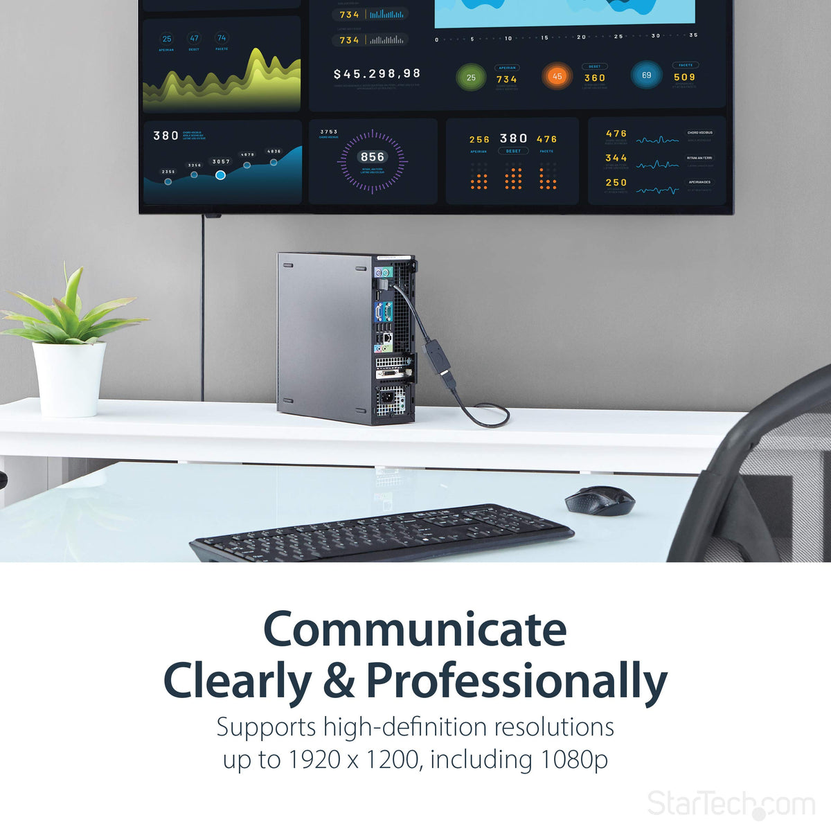 Q: How does the latching DP connector enhance the functionality of this adapter?A: The latching DisplayPort connector on the StarTech adapter prevents accidental disconnections from the host DP port, ensuring a stable connection. Additionally, it features Electromagnetic Interference (EMI) shielding to protect from line noise and distortion, enhancing overall performance.
