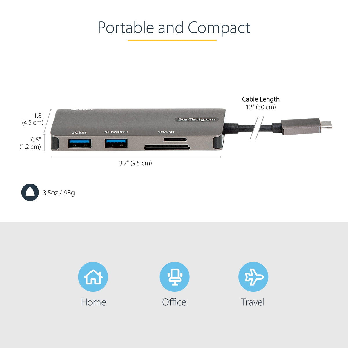 Startech.Com Usb C Multiport Adapter Usb C To 4K Hdmi, 100W Power Delivery Pass Through, Sd/Microsd Slot, 3 Port Usb 3.0 Hub