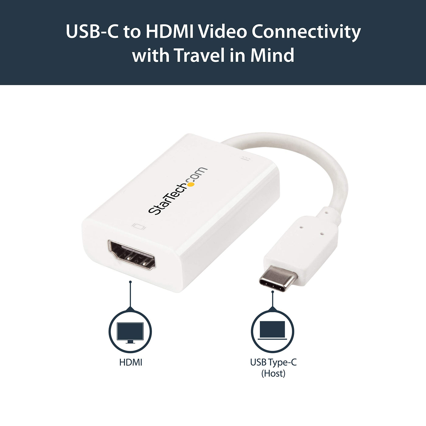 This Usb-C To Hdmi Adapter Enables You To Connect Your Laptop Or Macbook With Usb Type-C To An Hdmi Display The Video Adapter Features Usb Power Delivery, So You Can Power Your Laptop While Simultaneously Outputting Video To An Hdmi Display Usb Type-C Is A Universal Connectivity Standard That Combines All Of Your Essential Functions Into One Dynamic Port This Video Adapter Works With Usb-C Devices That Pass A Displayport Video Signal, Such As The Macbook And Chromebook Pixel And Its Also Compatible With Thunderbolt 3 Ports With Its All-White Design, This Usb-C Video Adapter Is The Perfect Accessory For Your Usb-C Equipped Macbook The Adapter Is Compact And Lightweight, So It Fits Easily Into Your Macbook Bag Or Carrying Case, Which Is Great For Byod (Bring Your Own Device) Applications At The Office While The Adapter Looks Great Next To Your Macbook Or Hp Envy Laptop, It Also Works With Any Usb-C Computer That Supports Displayport Alt Mode, Such As Your Windows Laptop This Video Adapter Supports Usb Power Delivery And Features An Additional Usb-C Port This Means You Can Charge Your Laptop, Even While Outputting Video, By Simply Connecting The Laptops Power Adapter To The Additional Port Its The Perfect Solution For Laptops That Only Have A Single Usb-C Port At Four Times The Resolution Of High-Definition 1080P, Youll Be Amazed At The Picture Quality Of A 4K Monitor Or Television The Adapter Lets You Harness The Video Capabilities That Are Built Into Your Usb Type-C Connection To Deliver The Astonishing Quality Of Ultra Hd To Your 4K Display 4K Resolution Gives You Additional Screen Space To Simplify Your Approach To Detailed Work Such As Editing Video And Viewing Large Spreadsheets Even If Youre Not Running 4K, The Adapter Supports High-Definition 1080P And Lower Resolutions The Cdp2Hducpw Is Backed By A 3-Year Startech