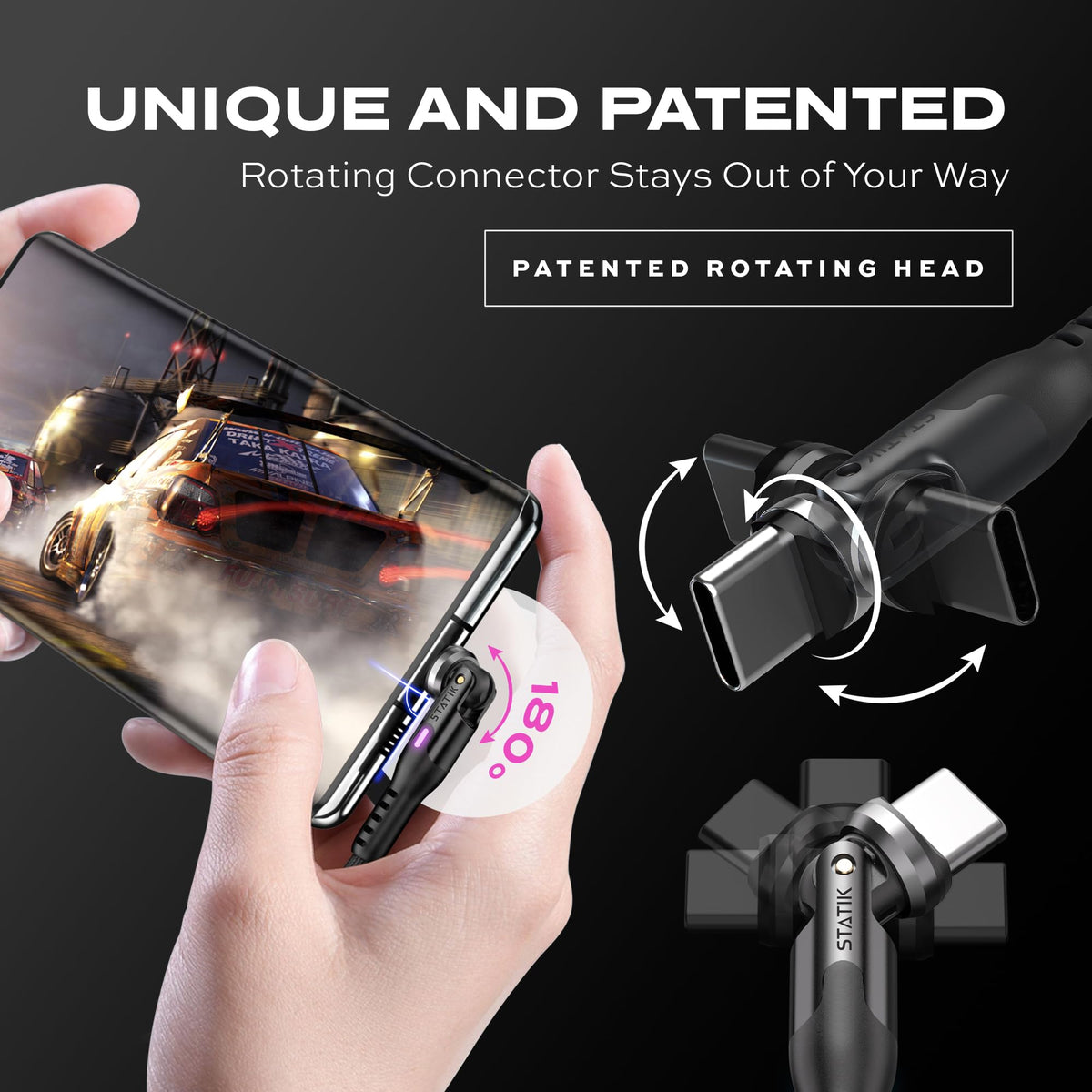 Revolutionary Rotating Usb A To C Cable Head: Enjoy All The Advantages Of The Statik 360 Usb To Usbc Cable Without Magnetic Tips. The Rotating Head Of The New Powerpivot Usb To C Cable Charger Helps You To Effortlessly Find The Optimal Position, Reducing Strain On Your Phone Charger Usb C Port. Plus, The Usb C To Usb A Cable Easily Adjusts To Any Grip, Ensuring Hassle-Free Usb Type C Cable Fast Charging Every Time. | Exclusive C Charger Cord Design: Discover A Usb C Fast Charging Cable Unavailable Anywhere Else. Crafted With Longer Connectors To Accommodate Various Phone And Tablet Cases, Our Usb C Cord Boasts A Robust Nylon Usb C Cable To Usb Build, Guarding Against Fraying And Safeguarding Your Device From Damage Caused By Inferior Charging Cables. Each Purchase Includes A Convenient Silicone Usb To Type C Fast Charging Cable Organizer. | Light Up Your Charging Experience: With Its Unique Led Lighting, The Powerpivot Globright Light Up Phone Charger Cord Provides A Vibrant And Glowing Charging Experience. Ideal As A Light Up Charging Cable, The Powerpivot Globright Led Charging Cable Is A Glowing Light Up Phone Charger Cord That Glows When Plugged In, Providing A Stylish And Eye-Catching Addition To Your Workspace Or Bedroom. | Usb Type C Charger Innovation: Patent-Pending ''U'' Pill-Shaped Head Design Sets The Statik Powerpivot Usb Charging Cable Apart. Enhanced With Extended Rubber Usb C Data Cable Transitions For Added Durability And A Sleek Appearance, Our Type C Charging Cable Also Features Led Charging Indicators, Providing Real-Time Status Updates. Empower Your Charging Experience With Our Cutting-Edge High Speed Fast Charger Usb C Cable. | Seamless C Type Charger Fast Charge & Data Transfer: Elevate Your Connectivity With Our Usb To Usb-C Cable, Delivering Ultra-Fast Data Transfer Speeds Of 480Mbps (Usb 2.0 Standard). Perfect As A Usb To Usbc-C Cable, Our Usba To Usbc Cable Ensures Seamless Music Streaming, Podcast Listening, And More, Surpassing Wifi Speeds By 20X. From Chromebooks To Macbook Air And Other Iproduct Devices, The Powerpivot C Type Charger Cord Ensures Rapid Recharging.