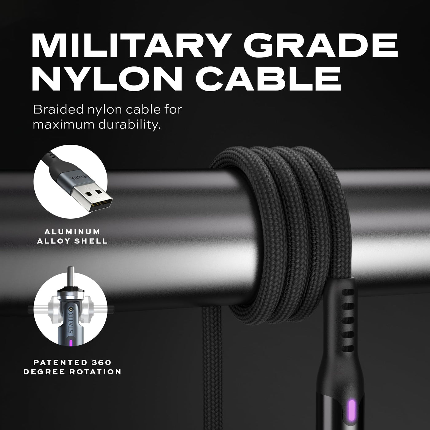 Rotating Usb A To Iproduct Cable Head: Enjoy All The Advantages Of The Statik 360 Usb To Iproduct Cable Without Magnetic Tips. The Right Angle Rotating Head Of The New Powerpivot Usb To Iproduct Cable Charger Helps You To Effortlessly Find The Optimal Position, Reducing Strain On Your Phone Charger Port. Plus, The Usb A To Iproduct Cable Easily Adjusts To Any Grip, Ensuring Hassle-Free Cable Fast Charging Every Time. Exclusive Charger Cord Design: Discover A Usb A To Iproduct Fast Charging Cable Unavailable Anywhere Else. Crafted With Longer Connectors To Accommodate Various Phone And Tablet Cases, Our Usb A To Iproduct Cord Boasts A Robust Nylon Build, Guarding Against Fraying And Safeguarding Your Device From Damage Caused By Inferior Charging Cables. Each Purchase Includes A Convenient Silicone Fast Charging Cable Organizer. Fast Charger Usb A To Iproduct Cable: Empower Your Charging Experience With Our Cutting-Edge High Speed Cable Featuring A 12W Power Output (5V/3A). From Chromebooks To Macbook Air And Other Iproduct Devices, The Statik Powerpivot Charger Cord Ensures Rapid Recharging, Getting You Back To What Matters Most In No Time. Patented ''U'' Pill-Shaped Head Design Sets The Statik Powerpivot Usb Charging Cable Apart. Enhanced With Extended Rubber Transitions For Added Durability And A Sleek Appearance, Our Usb A To Iproduct Charging Cable Also Features Led Charging Indicators, Allowing You To See What Your Device Is Being Charged. Includes Data Transfer Capabilities: Fast Data Transfer Speeds Of 480Mbps (Usb 2.0 Standard) - That'S 20 Times The Average Wifi Speed! Our Usb A To Iproduct Cable Ensures Seamless Music Streaming And Podcast Listening By Connecting To Carplay Or Android Auto.