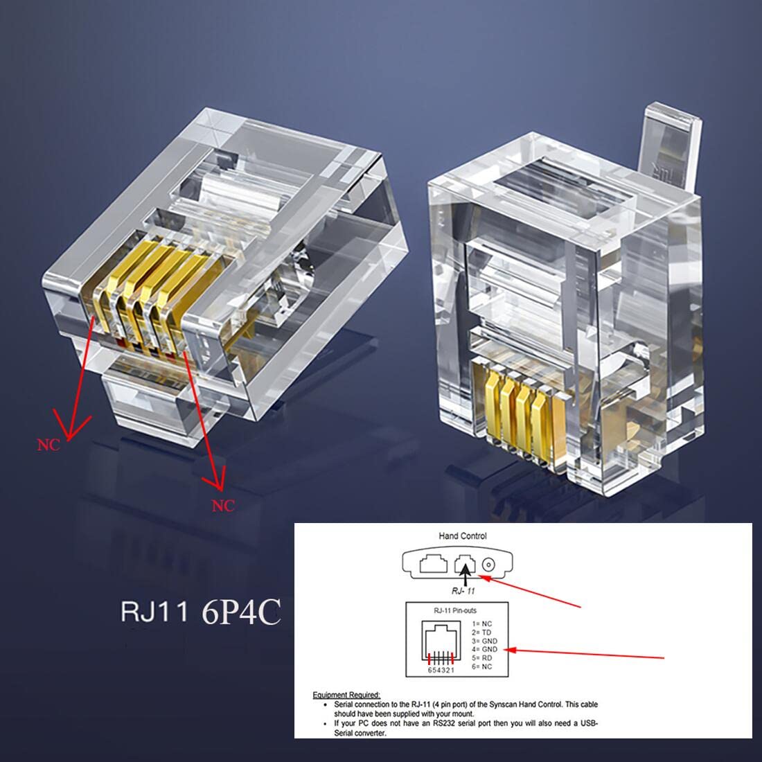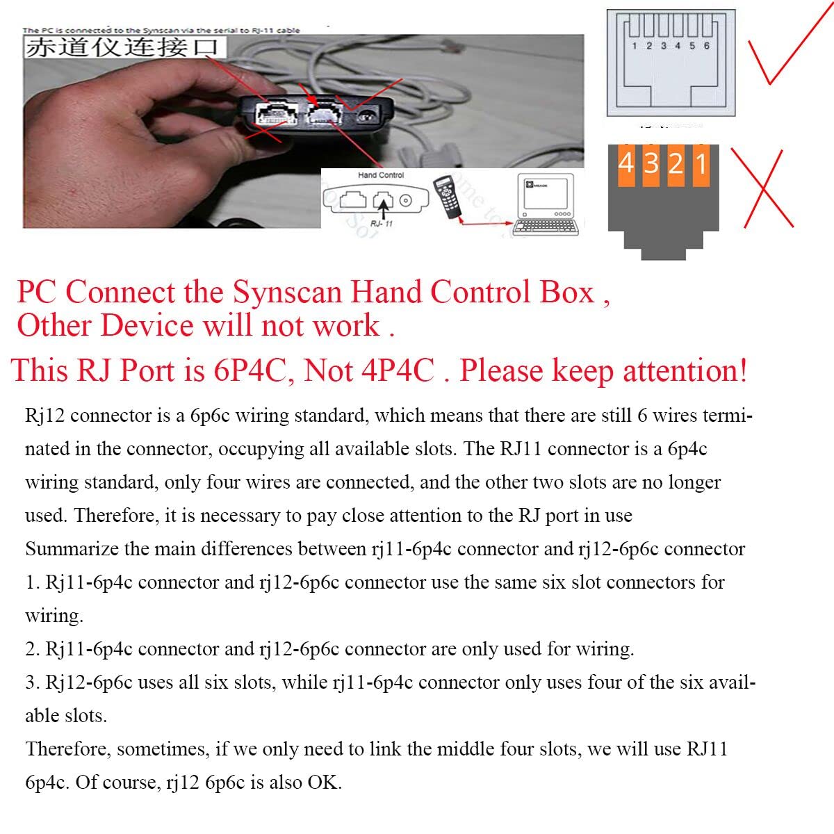 This Cable Is Used In Your Pc Connects Your Hand Control Box For Celestron Nexstar Eq6 Telescopes Ft231Xs Usb To Rj11 6P4C Or Rj12 6P6C Hand-Controller Box Rs232 Pc Connect The Synscan Hand Control Box Serial Converter Cable For Celestron Nexstar Eq6 Hand Control Pc Connect Cable Ft231Xs Usb To Rj11 6P4C Pc To Hand-Controller Rs232 Serial Converter Cable Option 1: For Celestron Nextstar This Option Provides Basic Mount Control From Pc Using Celestron Nexstar Drivers. For Those Owners Whose Mount Has A Synscan Handcontroller This Functionality Is Available Out Of The Box . Prior To Synscan V3.01 The Handcontroller Had To Be Placed In A Special ''Serial Mode For This To Work. From Synscan V3.01 Onwards The Handcontroller Is Always In Serial Mode, And Is Always Ready To Talk With A Serial Connection. In This Mode The Synscan Unit Provides The Alignment And Goto Algorithms And Must Be Configured With Time, Date And Location. Some Planetarium May Provide Native Support For Celestron Drivers Others May Require The Use Of The Ascom Platform And Associated Ascom Nextstar Drivers. Connections: The Synscan Is Connected To The Mount In The Usual Way The Pc Is Connected To The Synscan Via The Serial To Rj-11 Cable Package: 1 X Ft231Xs Usb To 6P6C/6P4C Serial Cable