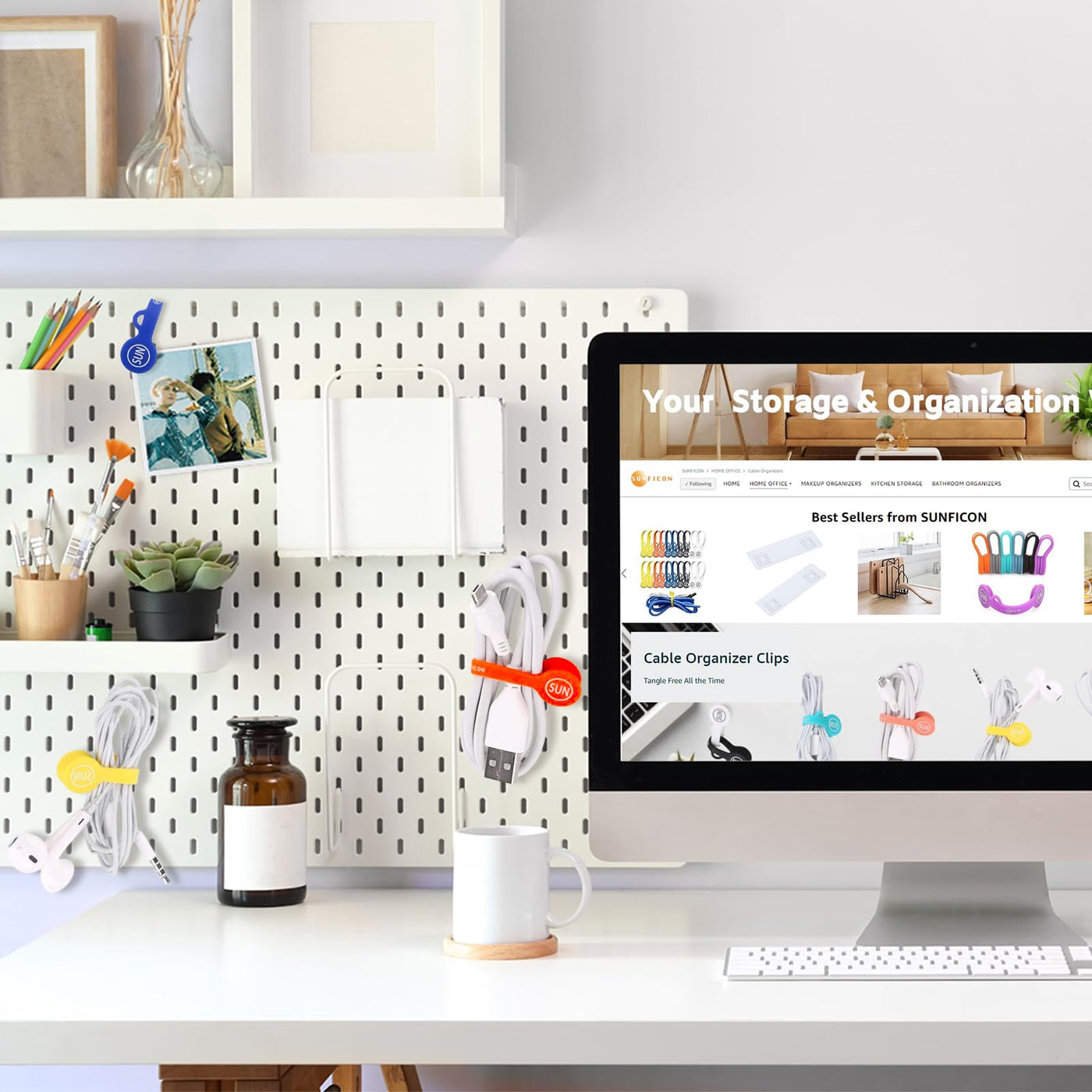 Q: What colors are available in the SUNFICON Magnetic Cable Organizer pack?A: The SUNFICON Magnetic Cable Organizer pack includes 14 brightly colored clips that not only help in organizing cables but also make it easy to distinguish between different cords, enhancing your workspace aesthetics.