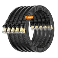 Surplay Cat7 5Pack 10Ft Ethernet Cable Black 10Gbps Shielded & Ground Wire Internet Network Flat Patch Cord,Ultra Slim Gold Plat