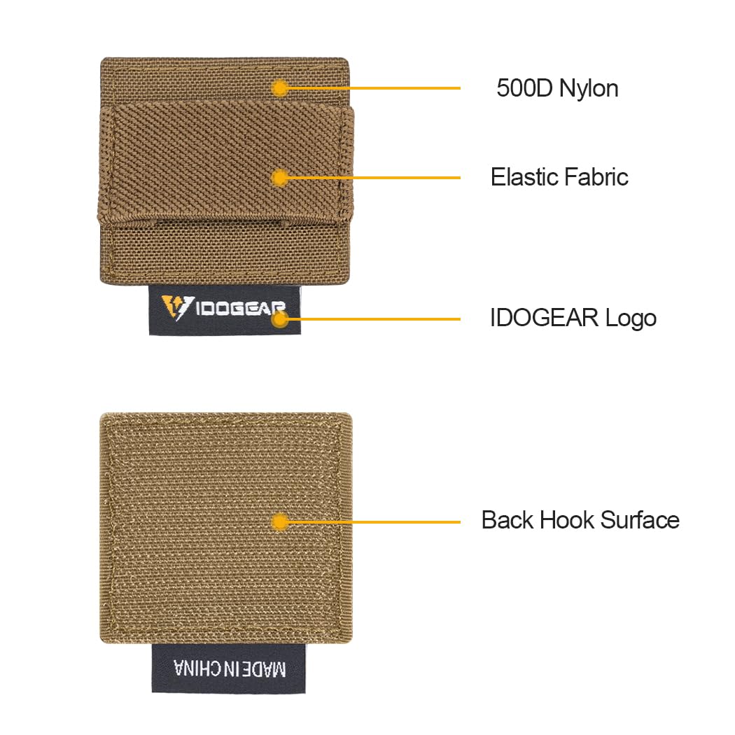 Q: What materials are used in the IDOGEAR SPORTS Tactical Cable Storage Sticker?A: The IDOGEAR SPORTS Tactical Cable Storage Sticker is made from high-quality 500D nylon composite fabric combined with a reliable hook fastener, elastic band, and a 3M adhesive loop fastener, ensuring durability and longevity.