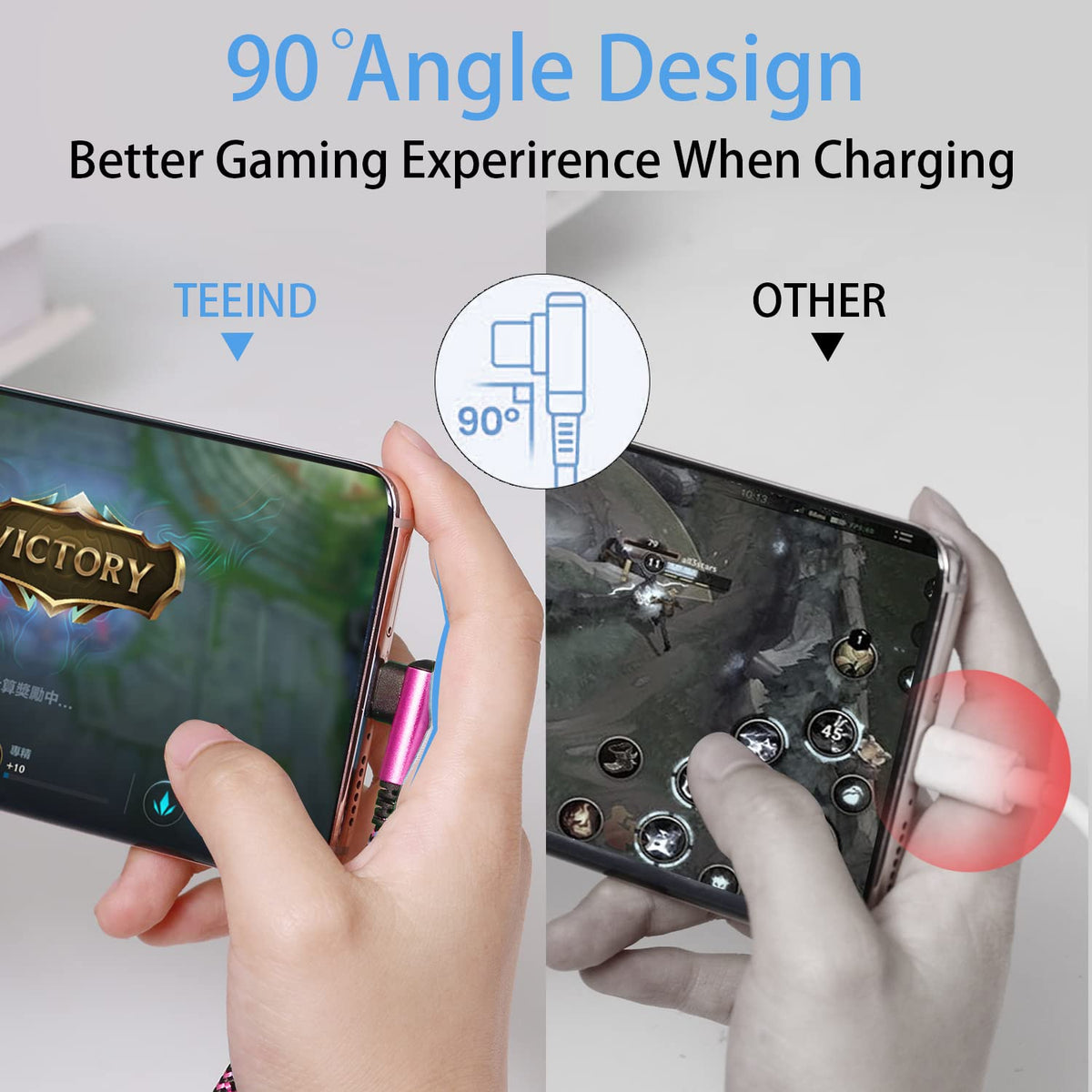 Q: How does the 90-degree design benefit users?A: The 90-degree design of the Teeind USB C Cord allows for a more user-friendly experience, making it convenient to use while charging. This design is particularly beneficial for activities like gaming, watching videos, or reading e-books, as it prevents the cable from bending or breaking during use.