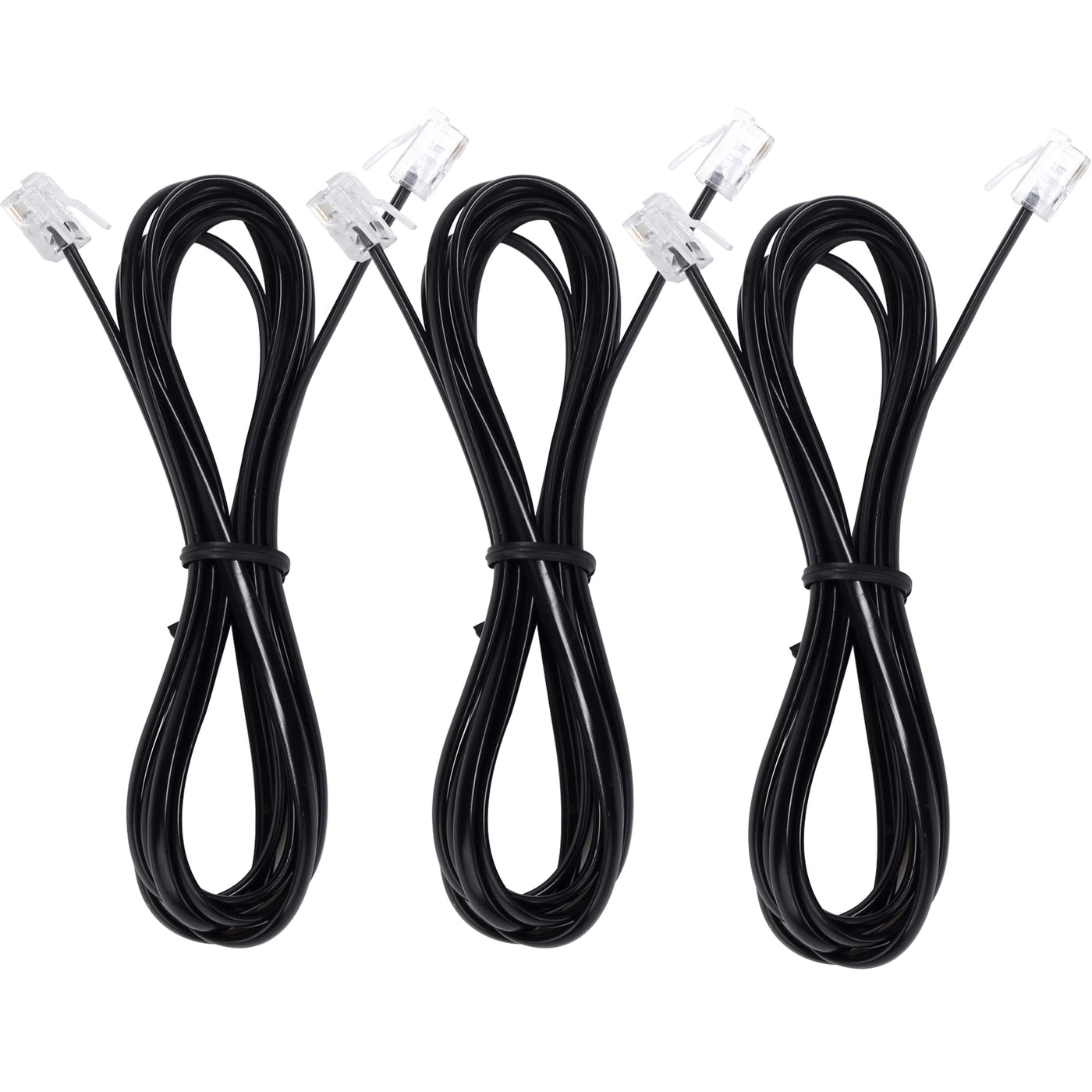 Telephone Landline Extension Cord Cable Cord With Standard Rj 11 6P4C Plug (3Ft 3Pack, Black)