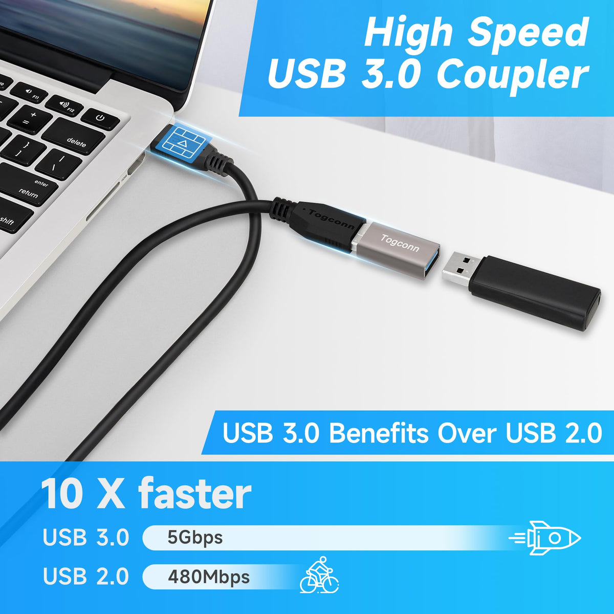 Togconn Female To Female Usb Adapter(4 Pack), Usb Type A 3.0 Female To Female 3.0 Cable Coupler, High Speed Usb Extension Connec