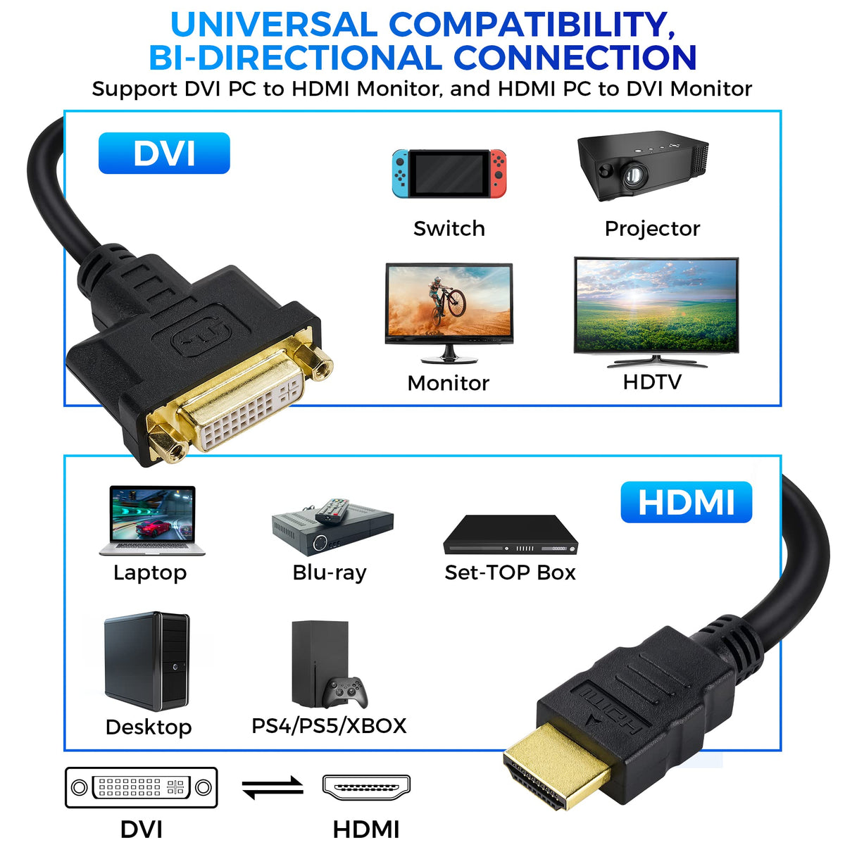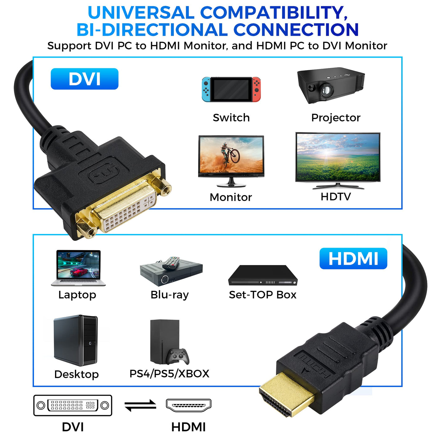 Togconn Hdmi Male To Dvi Female Adapter (2 Pack),Bi-Directional Dvi Female To Hdmi Male Connector, Support 1080P Full Hd Compatible For Roku, Xbox One, Ps5,Ps4,Blue-Ray Dvd, A/V Receivers-0.6Ft
