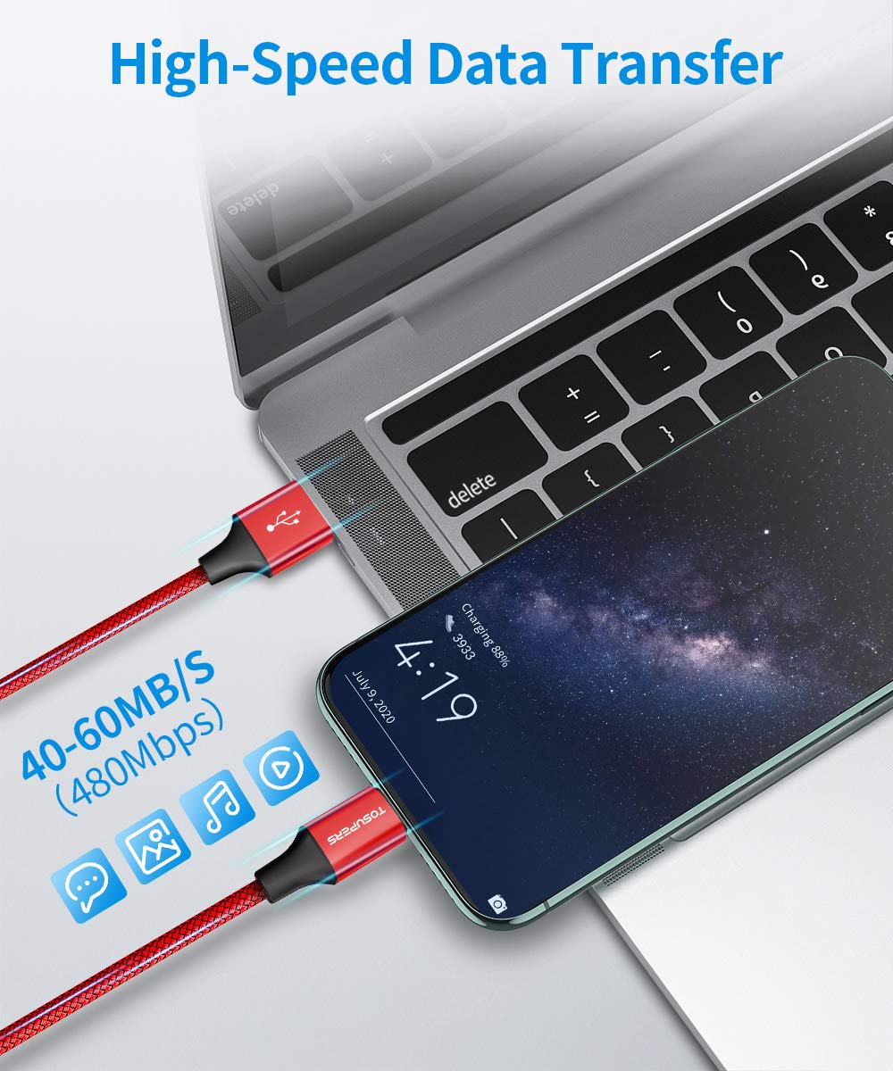 Tosupers Long Usb C Cable 10Ft, 3 Pack, 3A Fast Charging, Usb A To Usb C Charger Cable Braided For Iphone 16 15 Pro Max Plus, Samsung Galaxy S24 S23 S22 S21 S20 S10 S9 A54 A35 A15 A14