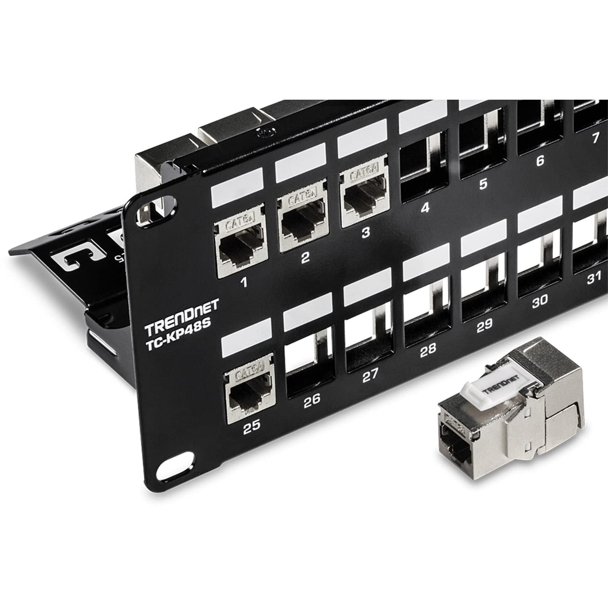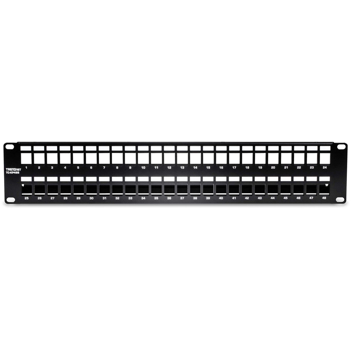 Trendnetas 48-Port Blank Keystone Shielded 2U Patch Panel, Model Tc-Kp48S, Is Designed For Use With Trendnetas Cat6A Shielded Keystone Jacks (Tc-K06C6A) When Used Together, They Create A Keystone Shielded Patch Panel Solution Suitable For Gigabit And 10G Copper Ethernet Network Applications Materials Spcc Steel Construction, Abs Plastics Use This Keystone Shielded Patch Panel With Cat6A Shielded Cabling, Which Is Specically Designed To Eliminate Emi And Crosstalk Ensuring Peak Performance And Data Integrity 2 Year Package Contents Tc-Kp48S Quick Installation Guide