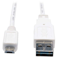 Tripp Lite Ur050-003-Wh, White, 3-Ft, Usb 20 A To Micro-B Cable, Features A Universal Reversible A Connector, Which Takes The Guesswork Out Of Which Way To Position The A Connector For Plugging Micro-Usb Is The Next Generation Of Usb Connector That Will Be Found On Cell Phones, Pdas, Usb On-The-Go ( Otg ) Devices, Digital Cameras, And More Smaller And More Durable ( 10,000 Insertion Cycles ) Than The Existing Mini-B Connectors, The Micro-Usb Will Also Handle Power Transfers, As Well As Data The Usb Implementers Forum ( Usb-If ) Has Designed The Micro-Usb To Eliminate Many Of The Proprietary Mini Connectors Found On Different Manufacturers Digital Devices, And It Will Be The Standard Usb Connection On Phones From The Major Cell Phone Manufacturers Usb 20 Rated Cable Handles 480Mbps Data Transfer Rates