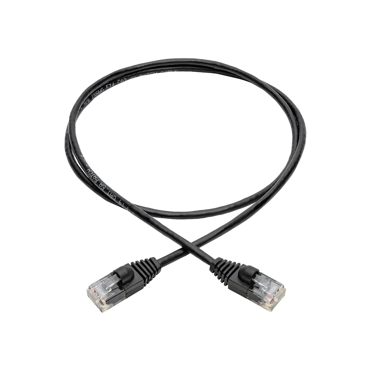 The N261-S03-Bk Cat6A Gigabit Snagless Molded Slim Utp Network Patch Cable (Mm) Is Ideal For Connecting Network Components Like Computers, Servers, Routers, Printers, Patch Panels And Switches In High-Density Data Centers Designed For Fast Transmission And Excellent Signal Quality, This Three-Foot Black Cable Ensures Peak Performance Throughout Your Local Area Network (Lan) Manufactured From 28 Awg Copper Wire, The Four-Pair Stranded Utp N261-S03-Bk Delivers Gigabit Ethernet Speeds Up To 10 Gbps Protected By A Pvc Jacket, This Cable Is More Than 38% Smaller In Diameter Than Standard Cat6A Cable, Which Increases Airflow In Tight Spaces And Makes It Easier To Install Around Corners And Through Cable Management Panels Rj45 Male Connectors Are Conducive To An Accurate Signal Transfer, Improving Near-End Crosstalk (Next) Performance To 650 Mhz The Snagless Design Protects The Locking Tabs Against Being Damaged Or Broken Off During Installation Integral Strain Relief Gives The Cable Extra Flexibility, Reduces Stress, And Helps The Cable And Connectors Move Freely Without Cracking Each Cable Has Been Tested And Certified Using Fluke Test Equipment Test Results Are Available Upon Request It Supports Ieee 802 3Af, Is Dte Power Compliant And Is Compatible With T568At568B Wiring