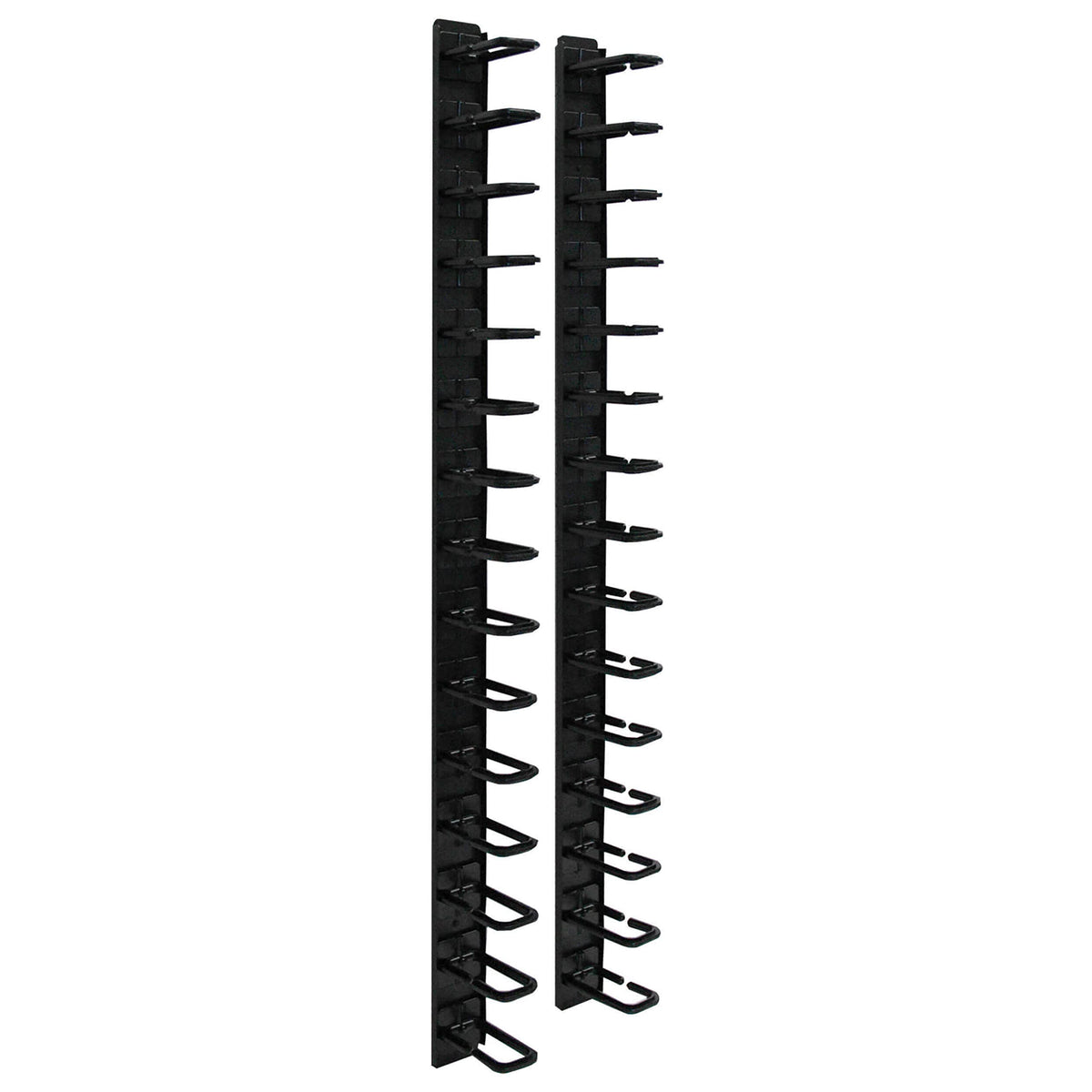 Q: What is the length of the Tripp Lite SRCABLERINGVRT Vertical Cable Manager?A: The Tripp Lite SRCABLERINGVRT Vertical Cable Manager is 6 feet long, but it can be split into two 3-foot sections for versatile installation options.
