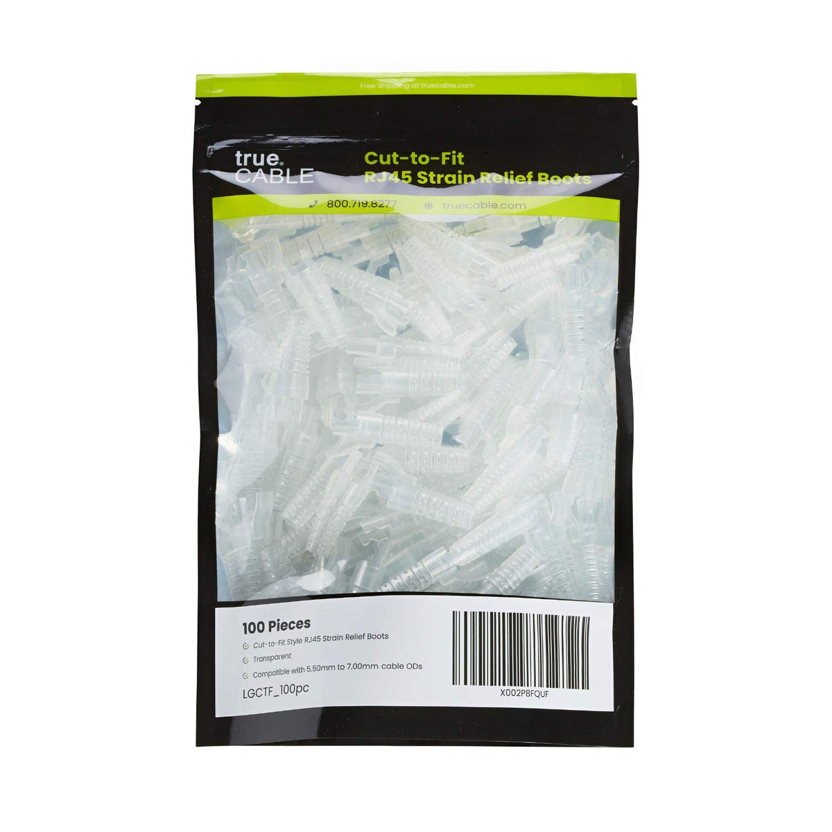 Truecable Rj45 Strain Relief Boots, Large 5.5 To 7.0Mm Cut To Fit Pvc Plug Cover, Transparent, 100 Pieces
