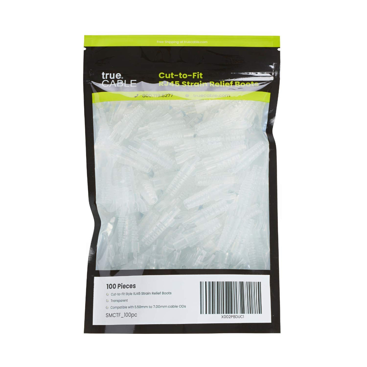 Truecable Rj45 Strain Relief Boots, Small 5.5 To 7.0Mm Cut To Fit Pvc Plug Cover, Transparent, 100 Pieces