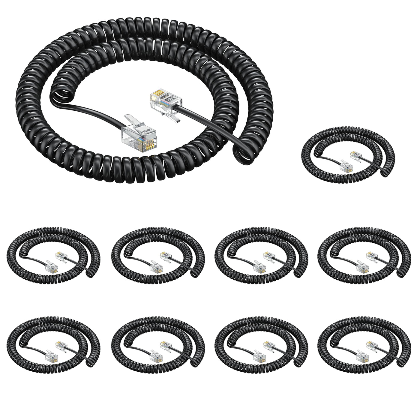 Color:Black The Phone Handset Cord Is Universally Compatible With All Telephone Manufacturers, Universally Compatible With All Telephones Manufacturers Make Your Phone Call And Reply More Pleasant And Convenient. This Cable Has Crystal Connectors For Clearer Communication. Completely Strong ,Easy To Install And Replace. Such As At&T, Nec, Rolm, Itt, & Tie And So On. Specifications Rj9 Universally Compatible Telephone Connectors With Thicker Gold-Plated Pins Material: Pvc Jacket And Copper Core Coiled Length: 6.5Ft Uncoiled Length: 8Feet, Typically Used Up To 6 Feet Length Of Straight Ends: 3 Inches, 10 Pack Telephone Handset Cords In Each Box.