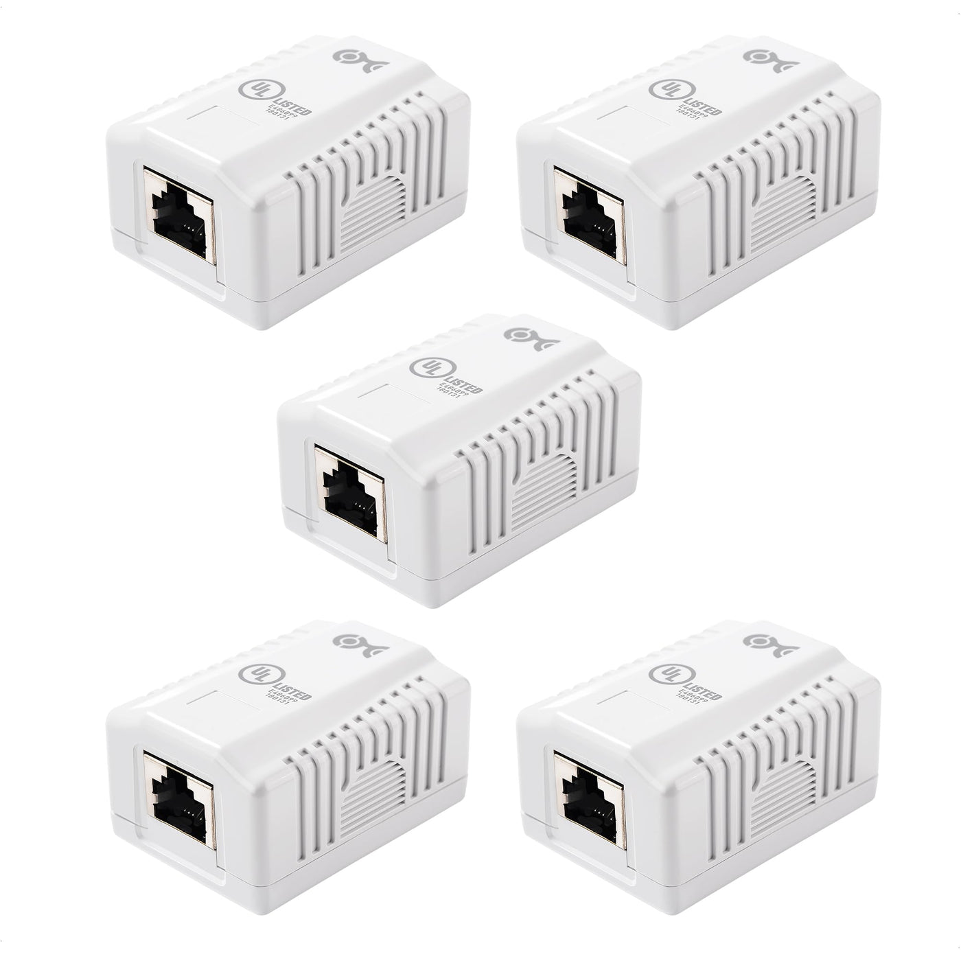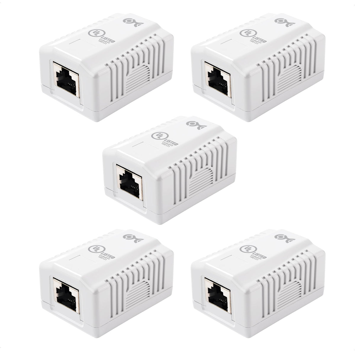 [UL Listed] Cable Matters 5 Pack Shielded Cat6A Surface Mount Box (Shielded Ethernet Surface Mount Box, Shielded Cat6 Wall Mount Box) in White