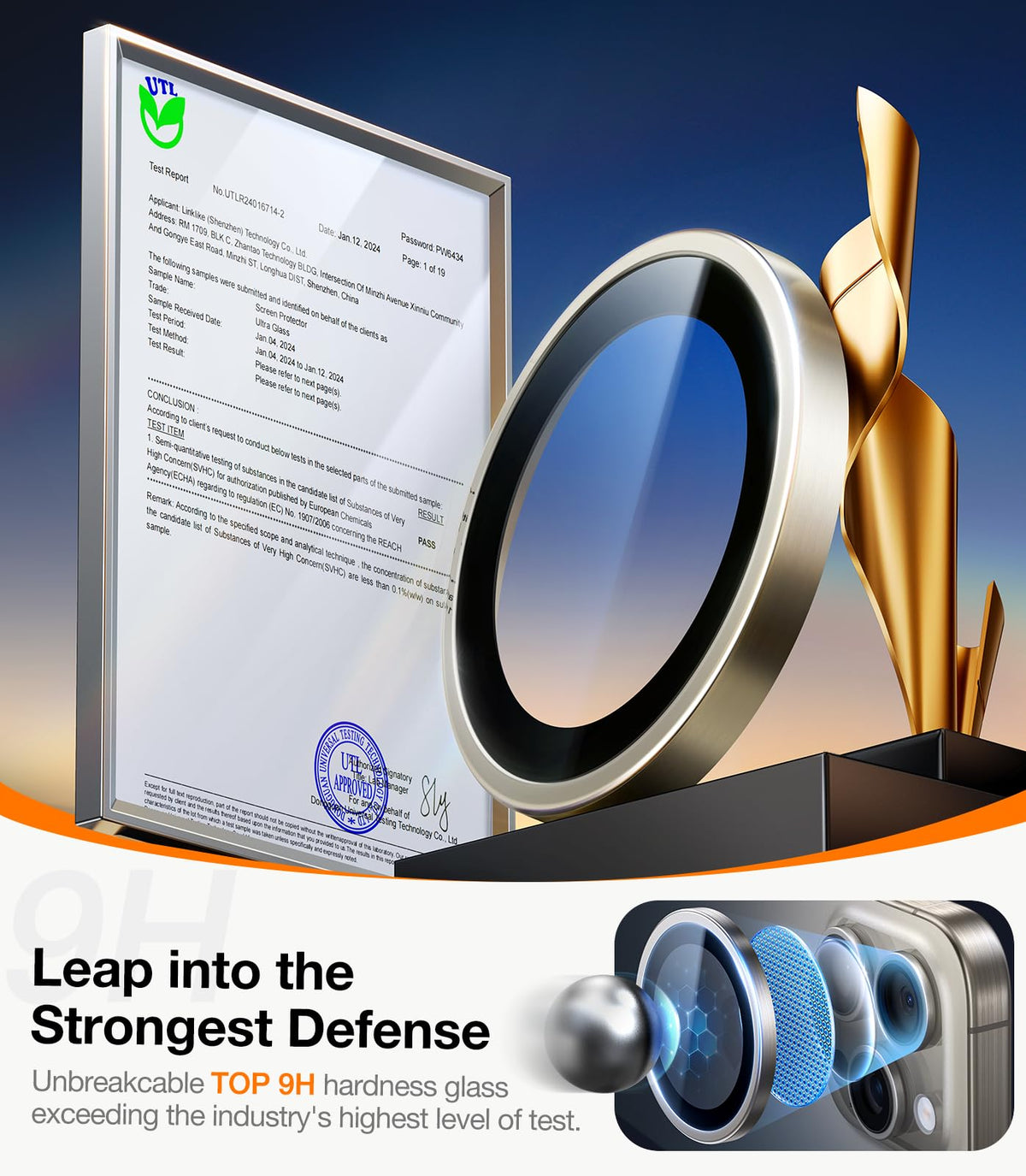 Ultraglass Unbreak Top 9H+ Glass For Iphone 15 Pro Max/15 Pro Lens Protector [Military Grade Shatterproof & Longest Durable] Cam