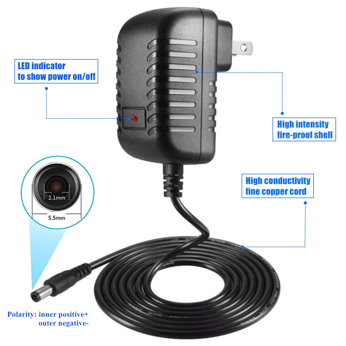 Q: How can I ensure the AC adapter works with my device?A: To ensure compatibility, check the DC socket size, power consumption, and polarity of your device. The adapter features a 5.5mm x 2.1mm connector and requires a positive inner and negative outer polarity. It's important to verify these specifications before purchasing.