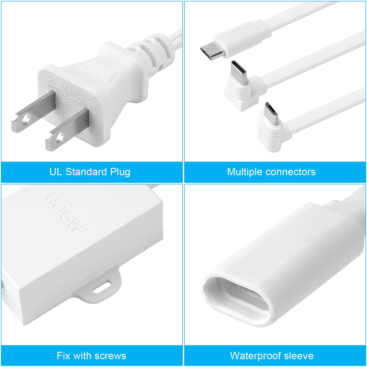 Uogw Charging Cable Power Adapter Compatible With Cam Pan V3, Og, Cam Pan V2,Cam V3 And V3 Pro,Battery Cam Pro Camera Package Contents: - 1 X 20Ft/6M Power Cable - 1 X L-Shape Micro Usb Adapter For Cam Pan V3 - 1 X L-Shape Type C Adapter For Battery Cam - 12 X Wire Clips Cable Nails