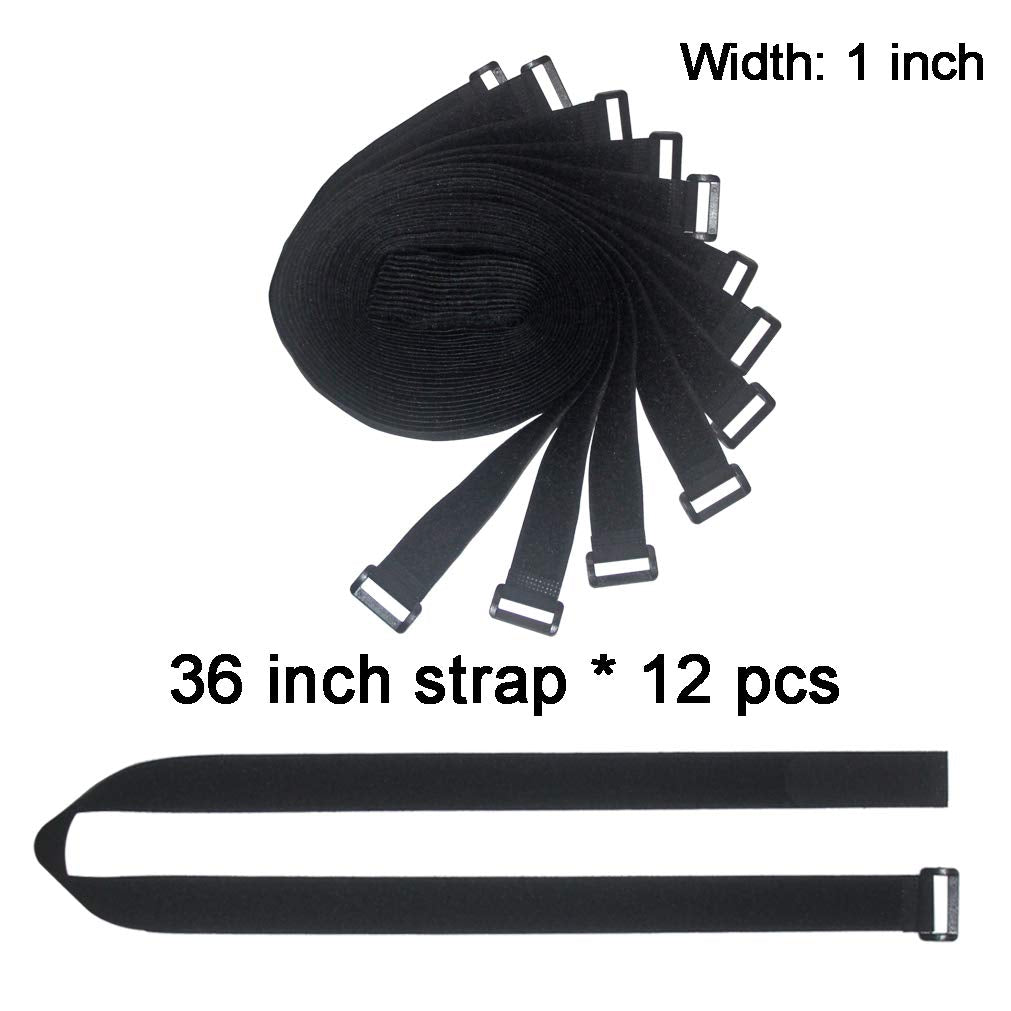 Uonika 36 Inch Cable Ties Down Straps,12 Pcs Reusable Fastening Hook And Loop Utility Cable Wraps Cinch Straps Straps Specification: Materials: Fabric Material Color: Black Style: Hook And Loop Fastening Cable Ties Town Straps This Is A 12 Pcs Set Of Black Straps For General Use. It Can Be Used In Housekeeping, Network Cabling, Fashion, Etc, And You Will Find Many Other Uses When You Get Them In Hands! Package Contains: 36*1 Inch Straps * 12 Pcs Cable Straps Features: 100% Brand New And High Quality The Length Can Be Adjusted Link The Straps Together To Secure Even Larger Items.