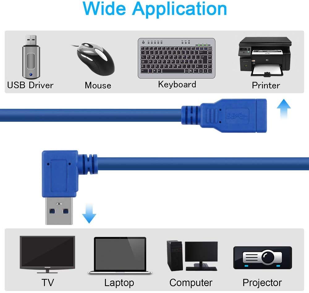 Features : -Universal Compatibility: We Have 2 Type Angles, 1 Left Angle, 1 Right Angle. 90-Degree Design Can Make For Better Cable Management In Some Situations, Especially In Tight Spaces. 31.5 Cm Usb 3.0 Cable Extension Angle Type A Male To Type A Female Connectors . Double Shielded Insulation And Blue Sleeve. The Usb 3.0 Cable Is An Indispensable Accessory For Pc And Mac Users To Bring Usb Peripherals Such , Usb Hubs, Camera, Mouse, Keyboards, Card Reader, Printers Etc Within Reach From Behind The Desk Or Across The Room. Super High Speed Usb 3.0 Delivers 10X The Data Transfer Rate Of Hi-Speed Usb 2.0 At Up To 5 Gbps.